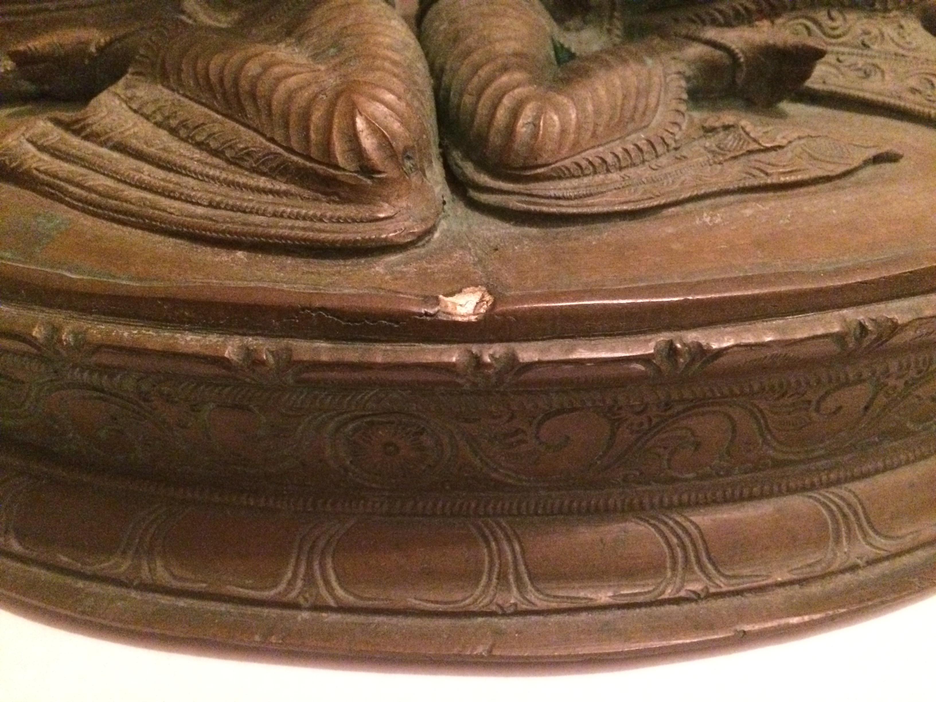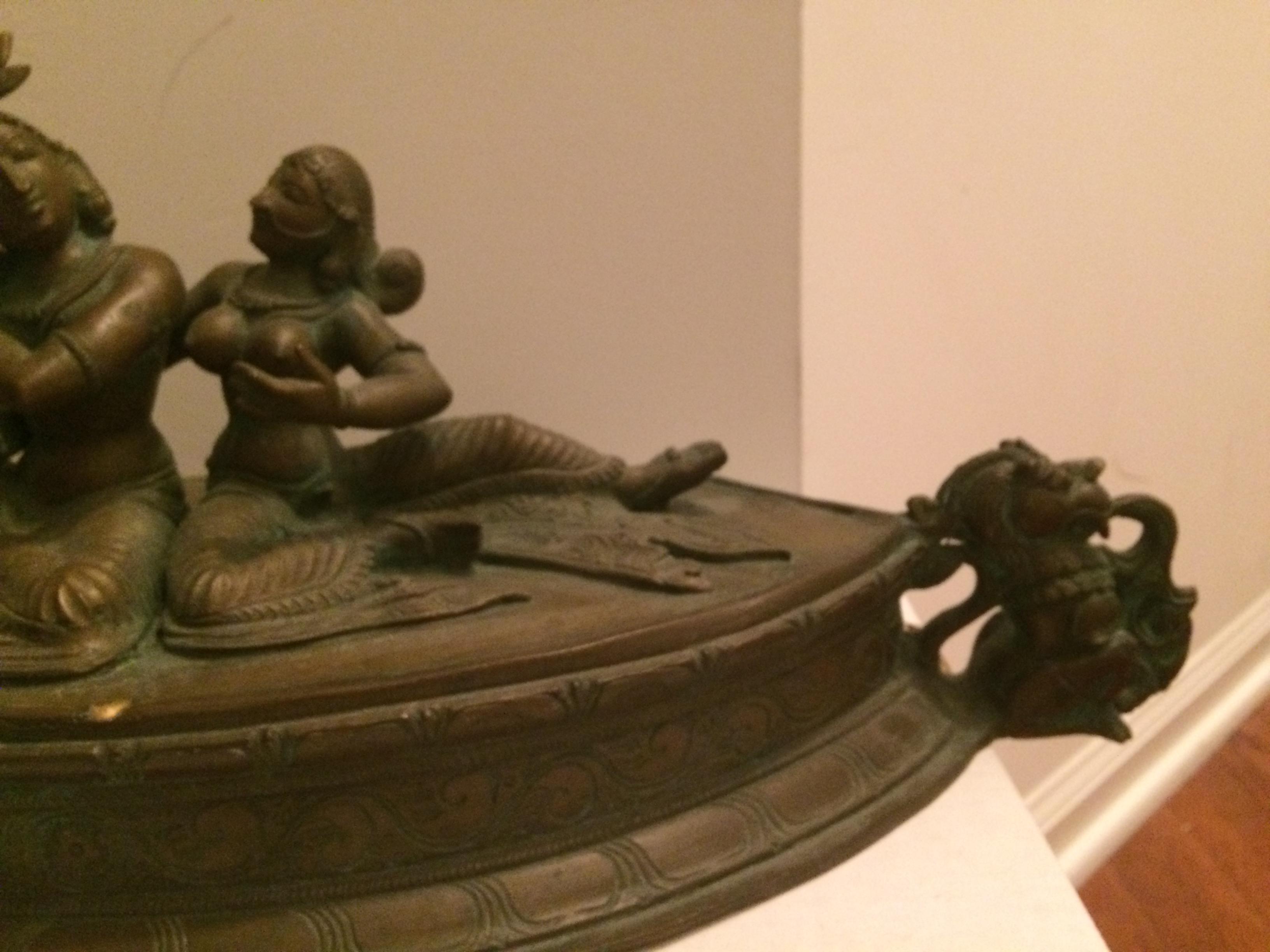 This bronze and approx. 20"W X 7" tall. I've only gotten as far as identifying the figures as Krishna and Radha but I would love to know more about the age and value. It weighs about 8.5 lbs. There are no marks or signature.