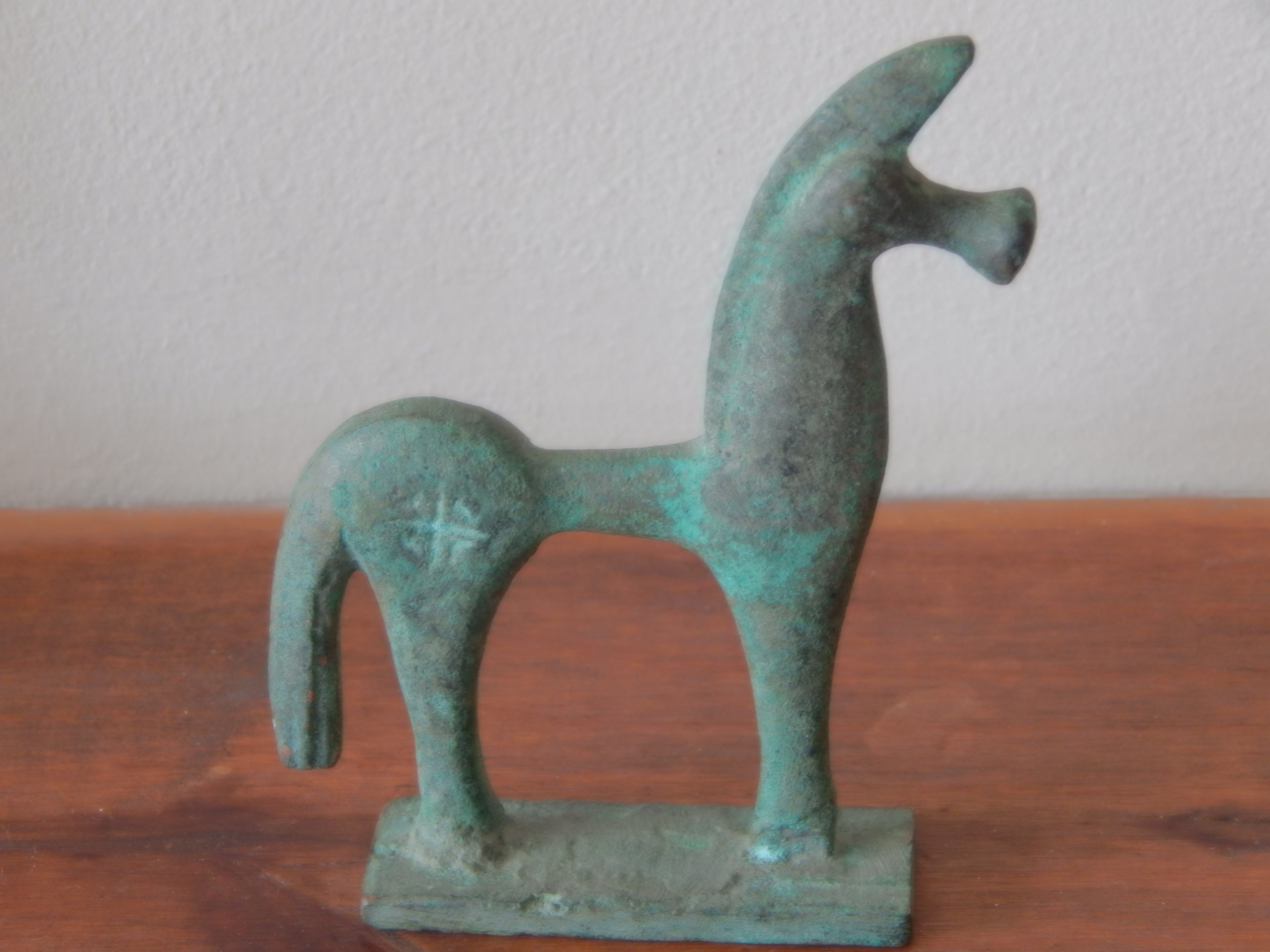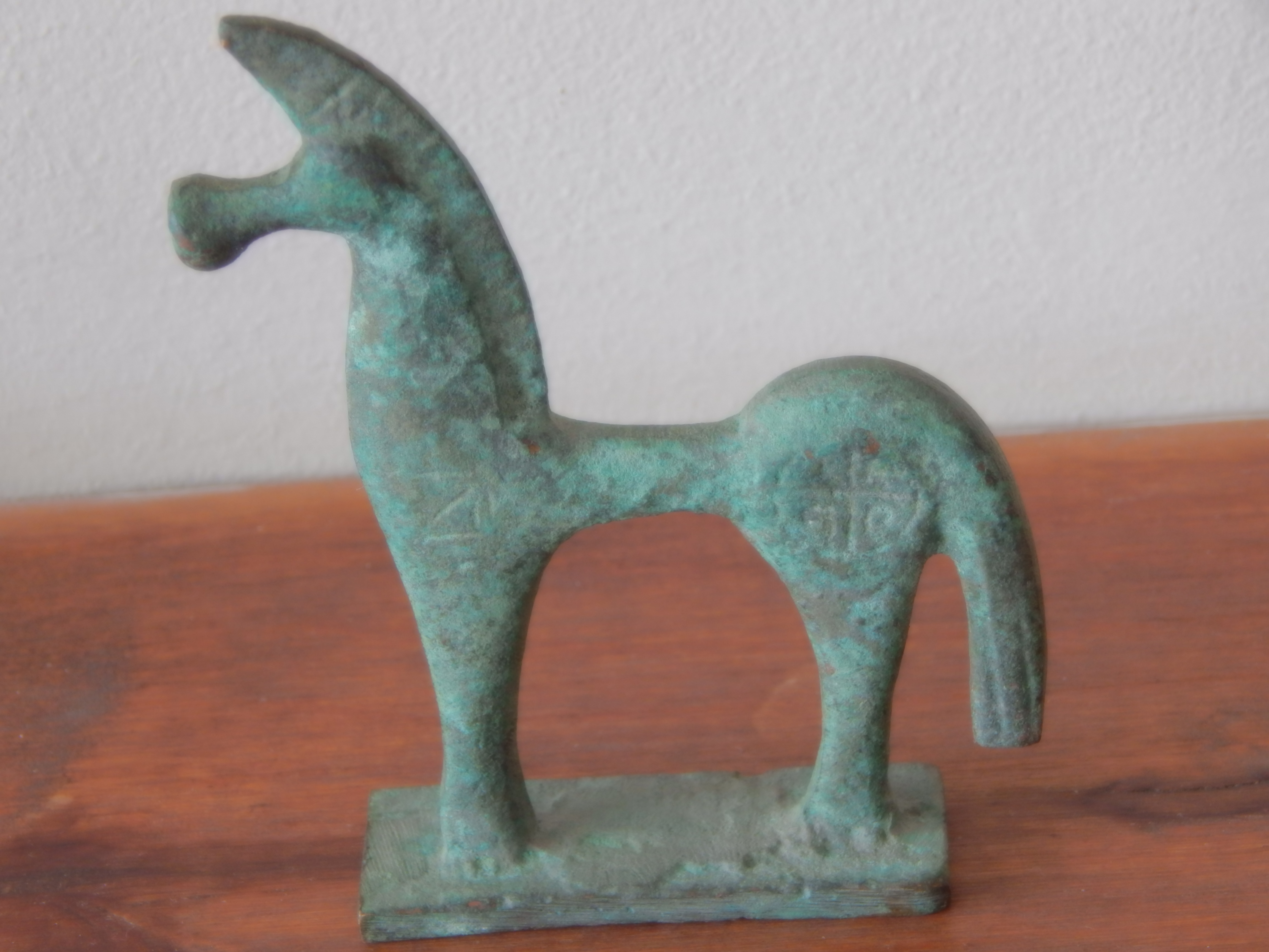 I found this what i believe to be bronze horse figurine, when looking through a box of my late fathers items, and i believe he bought it a good while ago from a antiques fair which he loved to visit. Its dimensions are Length 4" inches 10 cm x height 5" 12.5cm x base width 1" 2.5cm approx.