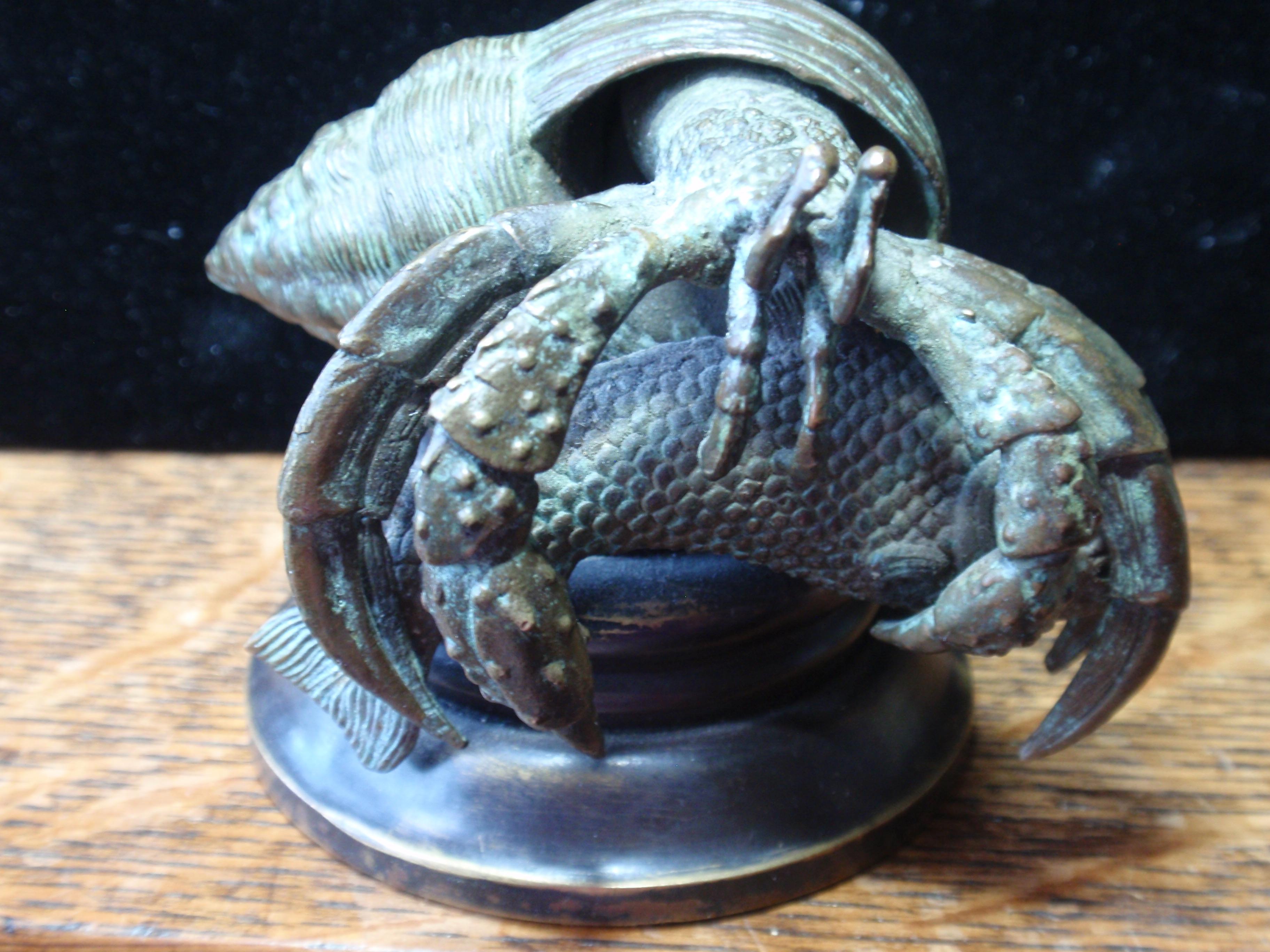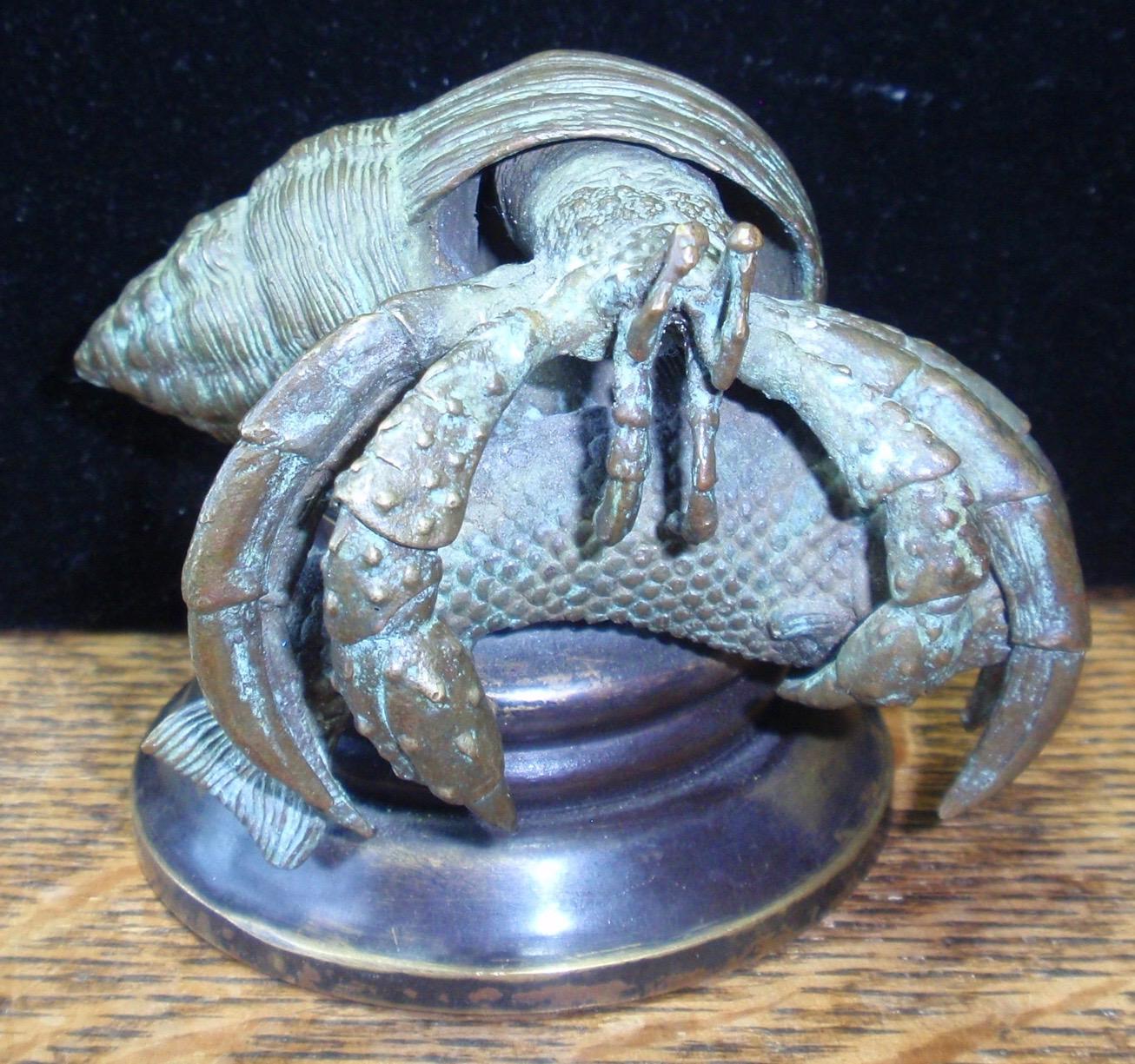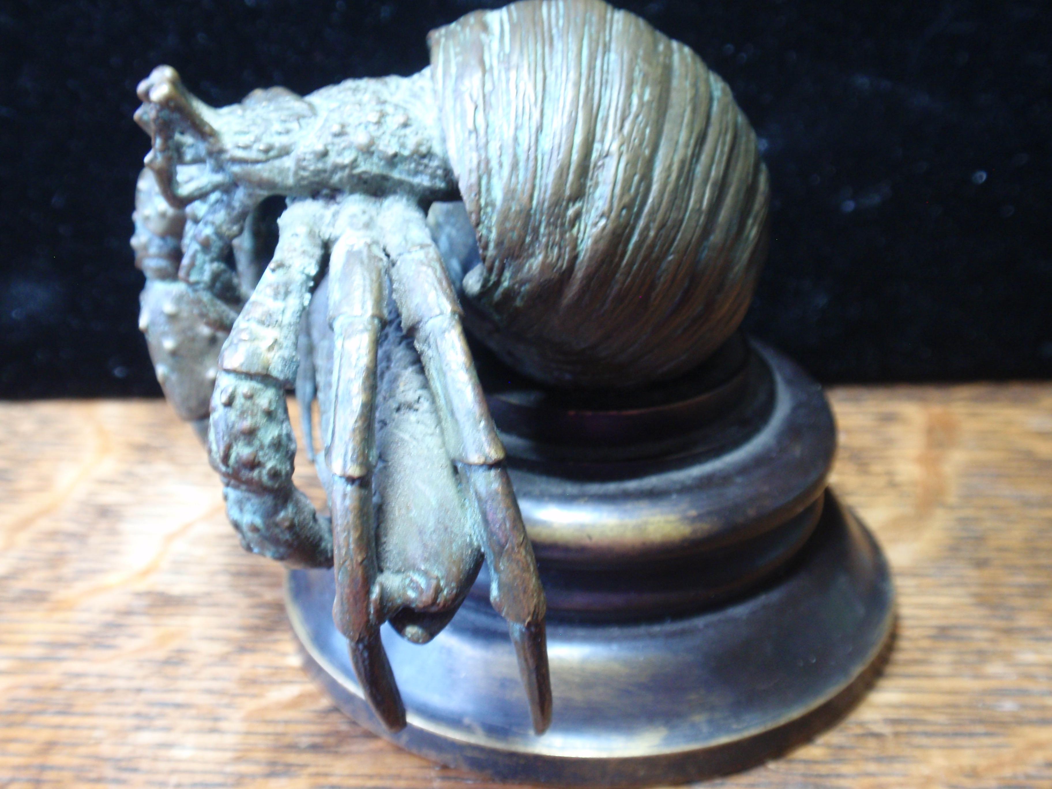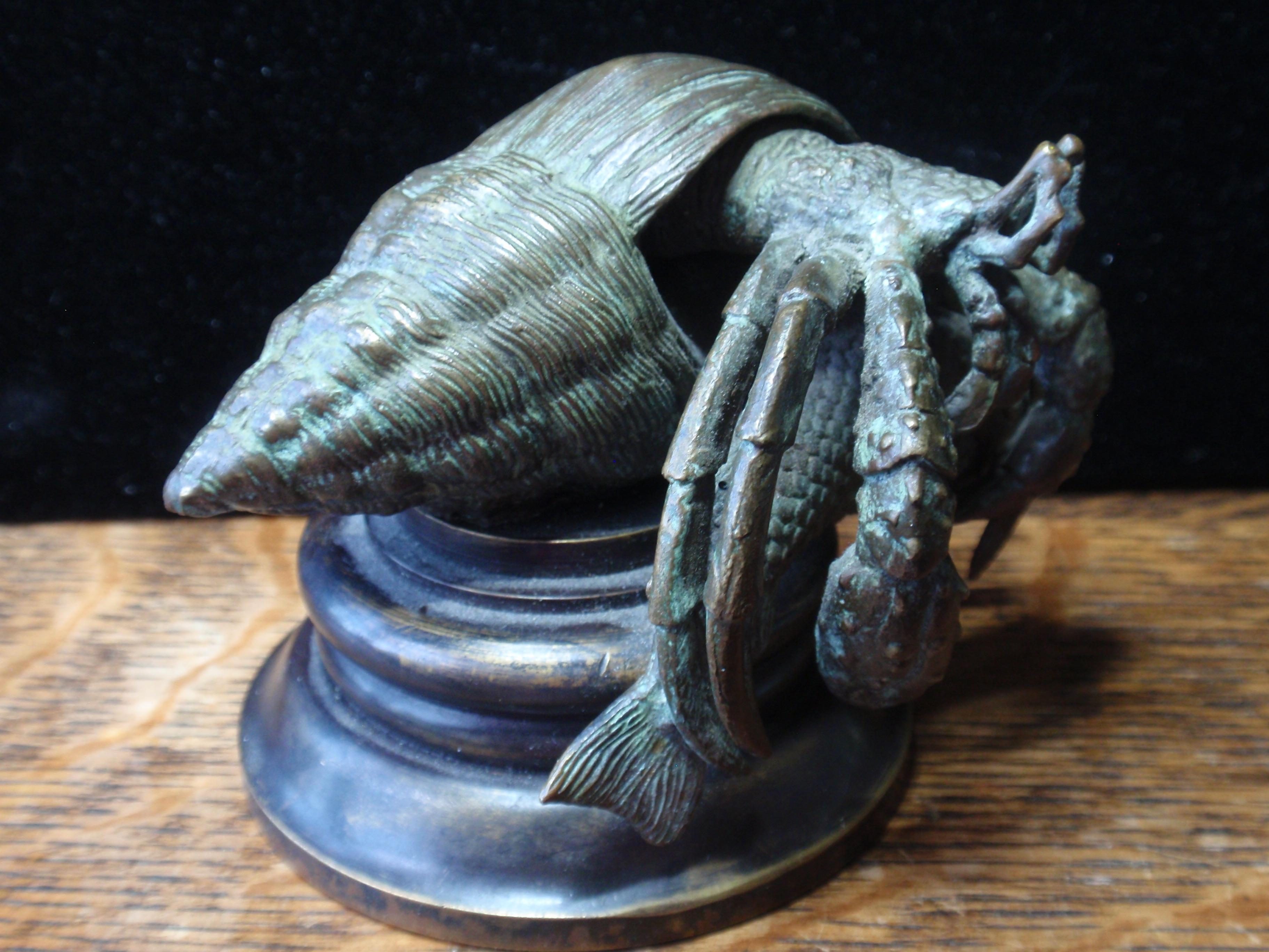 Pictured is a bronze (authenicated as bronze by gemologist) figure of a lobster who has captured a carp or sometype of fish. The piece is 634 grams. The base is 2 3/4" 3 1/4" high and 4" wide.