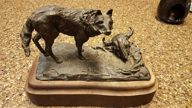 bronze wolf/wolfhound with skull on wood base.  titled :Lobo Name on it is jacobsen either Jam ,jom, jon Also has a symbol in a circle and a 81 I believe. Can find this no where. Any info would be helpful!