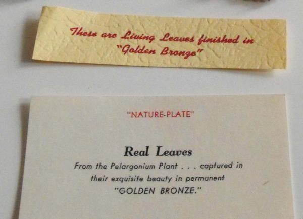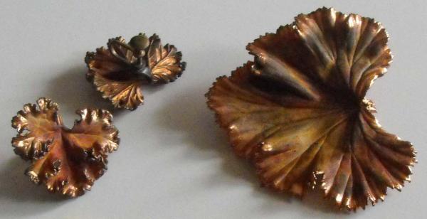 THIS IS A VERY UNIQUE SET OF REAL RED LEAVES THAT WERE BRONZED AND FASHIONED INTO A BROACH AND EARRING SET. CARDS ARE INCLUDED.