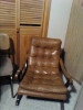 I recently purchased a pair of these brown leather barrel chairs from an estate sale. They are in really good condition and look like they are made from high quality leather. These chairs have nail head detail and wood trim. I do not see screws or staples, just some nails at the bottom of the chair. I do not see any brand or markings anywhere on this furniture. The underlining of the chair is a linenlike fabric. The back of these chairs has a lot of detail with a wood piece running from the top to the bottom of the back of the chair, leaving the leather exposed. I would love to find out the style and era of this chair is as well as the value.