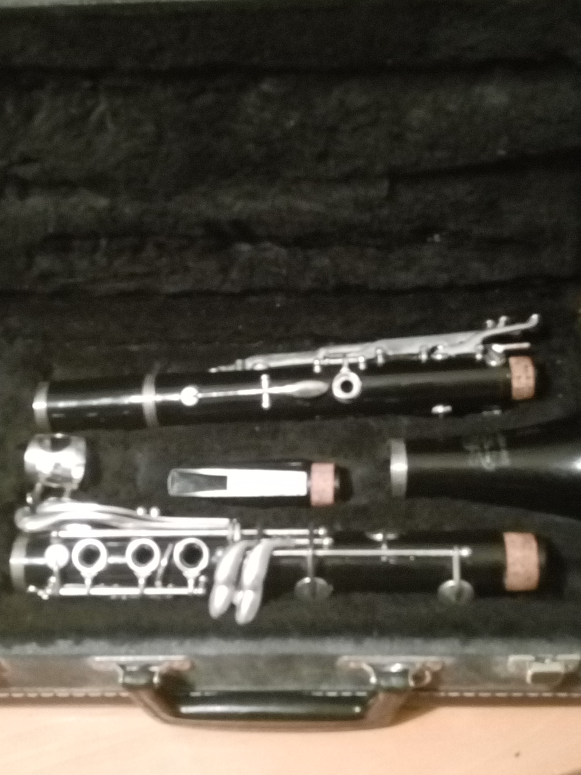 Black Clarinet with silver parts, cork fittings.