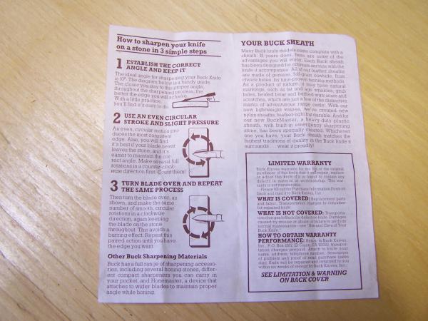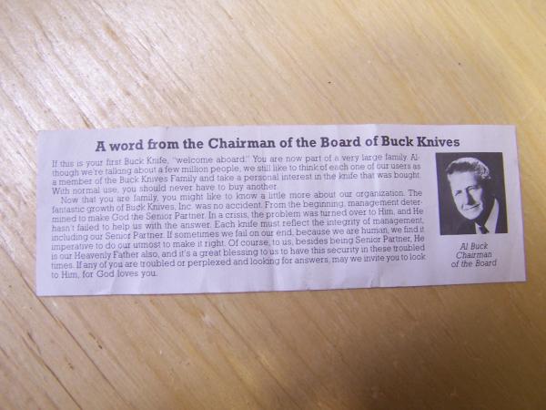 buck knife with all papers