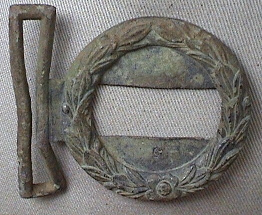 I left a comment earlier but its not here. Type in civil war buckels in google and view images . i found several like this. there should be a center piece madalion in it. It is OLD. Good luck.
