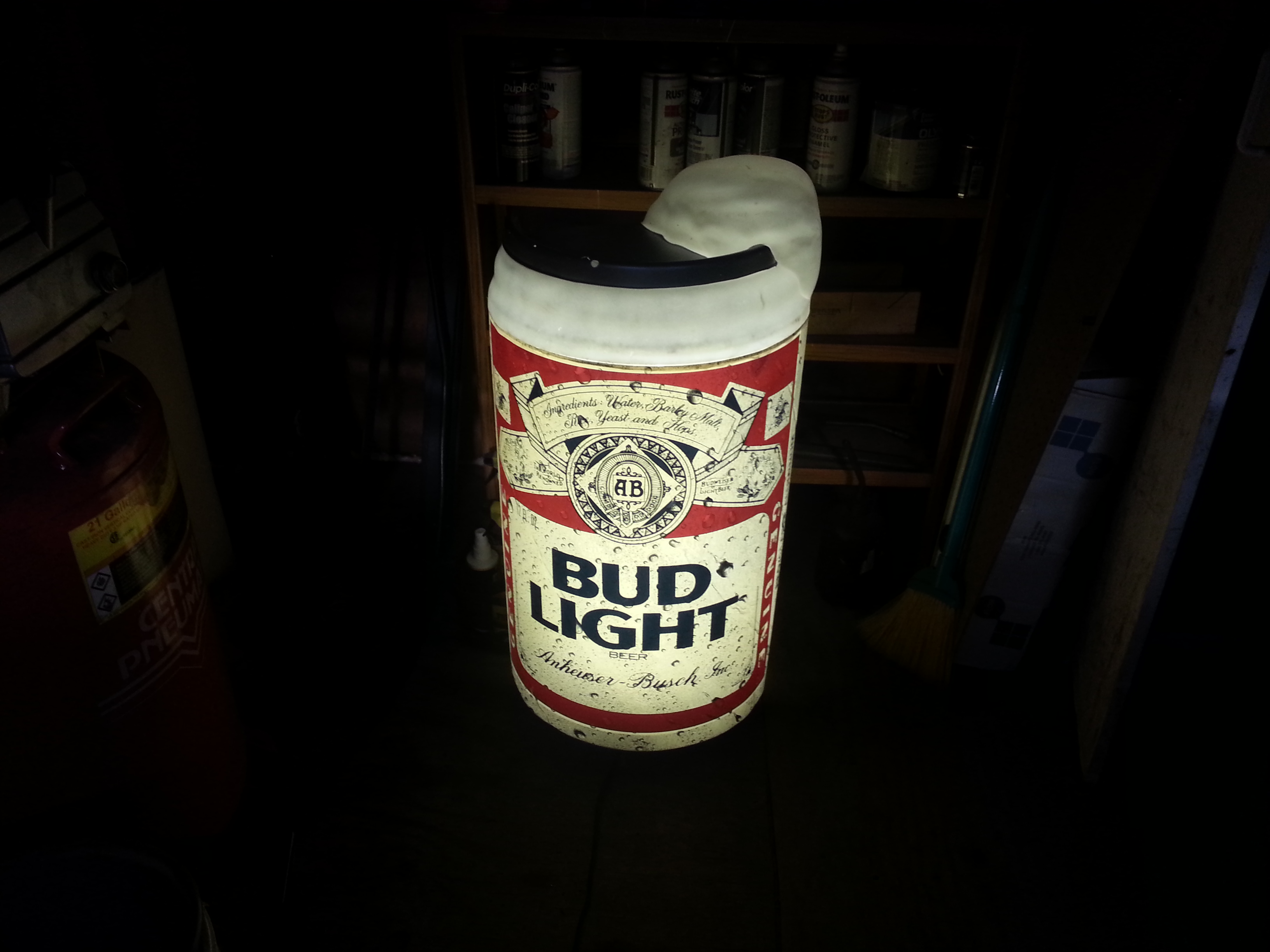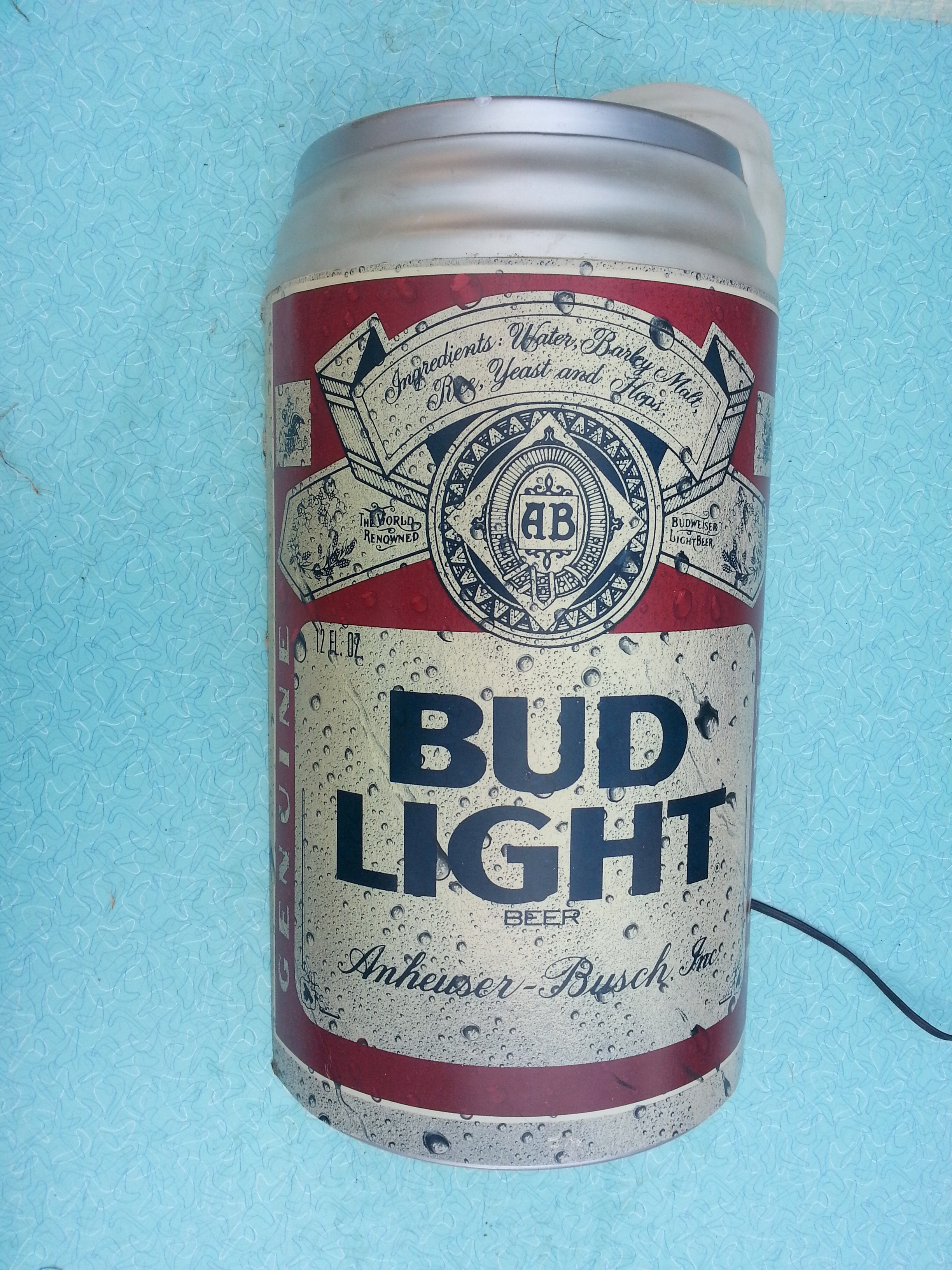 This is a plastic Bud Lite sign that lights up, it's about 3 ft tall. It's the shape of a can and looks like it has foam on top. The owner has had it for 30 years never hung it up and only turned it on occasionally. It looks to be from when Bud Lite first came out back in the 70's or 80's, maybe a first edition. I can't seem to find another picture anywhere. Any info would be welcome. Can anyone head me in the right direction to find somebody that could give me some information about this light?