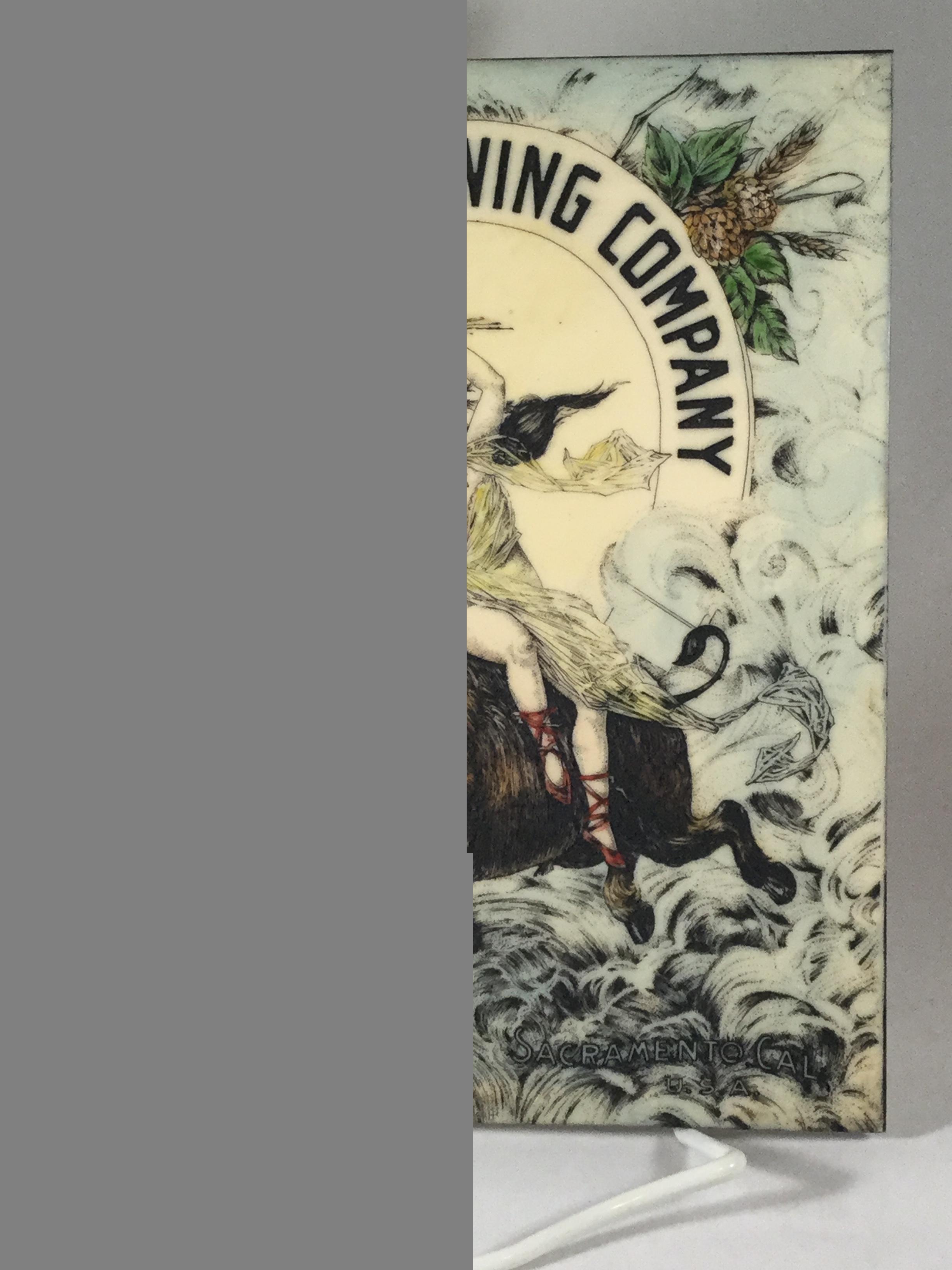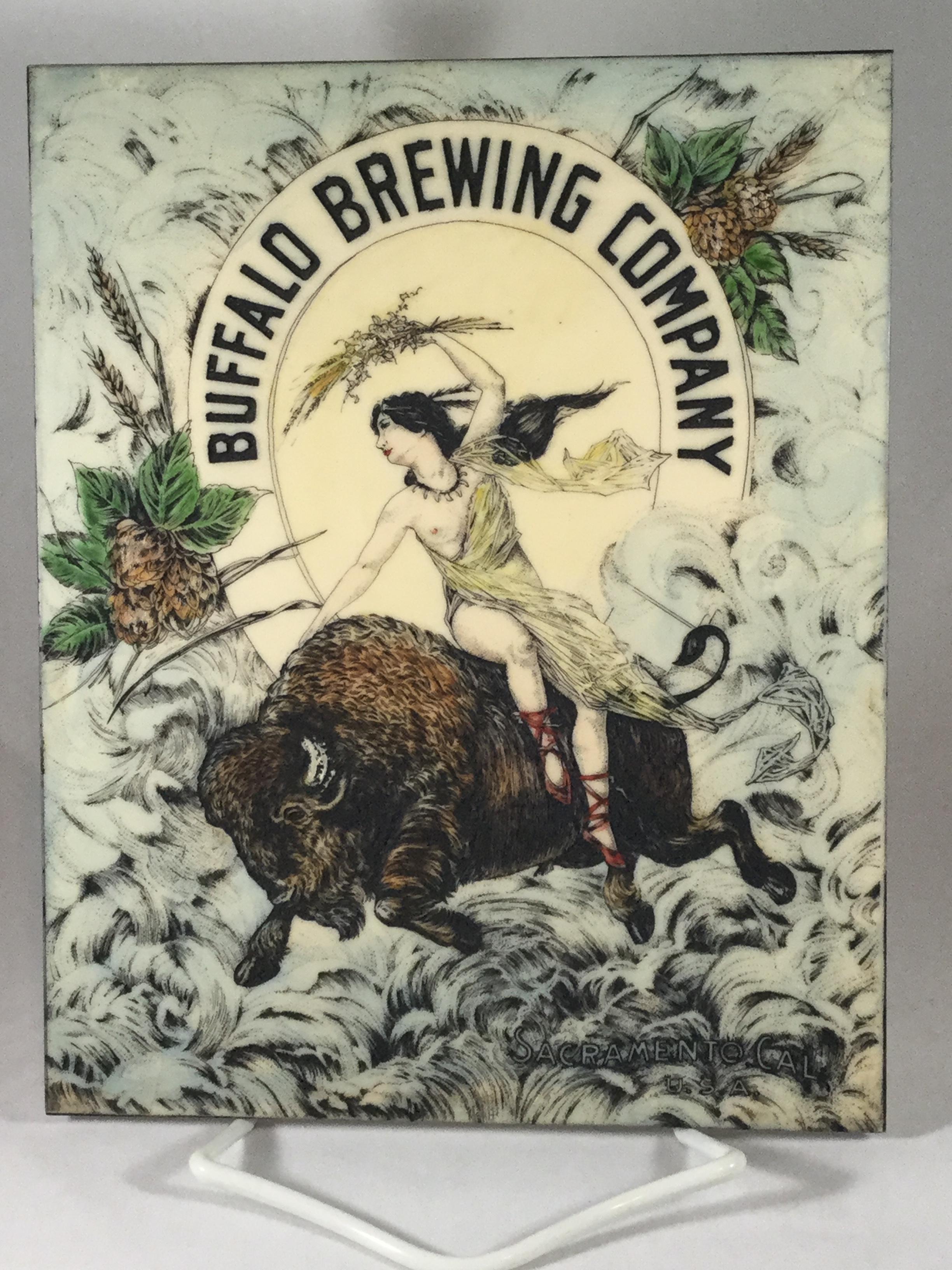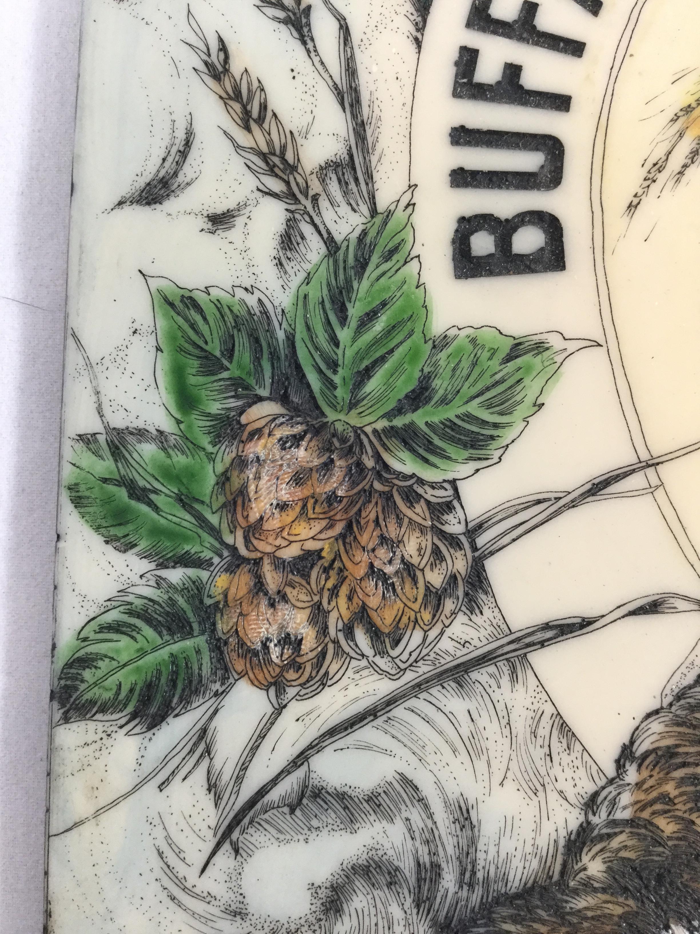 This item is an etched and painted celluloid advertisement(?) from the Buffalo Brewing Company.  Presumably from the late 19th or early 20th century, the item is 8" X 10" X 1/8".  Thank you for any information you can share.
