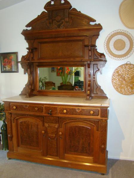 Pictures show all (except for the very top)...and that's good thing since I can't remember one thing I was told about this piece. This is a very tall piece and the top part is in three pieces. Mirror is original mirror. Drawers joints are shown in picture. I wanted to get an idea of what it is worth here so I have more knowledge when dealing with appraisers here in Scottsdale - I do want to sell this.