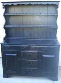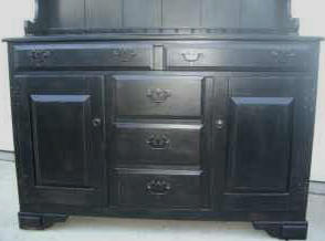 Both pieces were painted a distressed black finish when I purchased it. There are several marks where the paint has come off due to moving and one large gash on top of the buffet. All drawers/cabinets are in excellent condition.