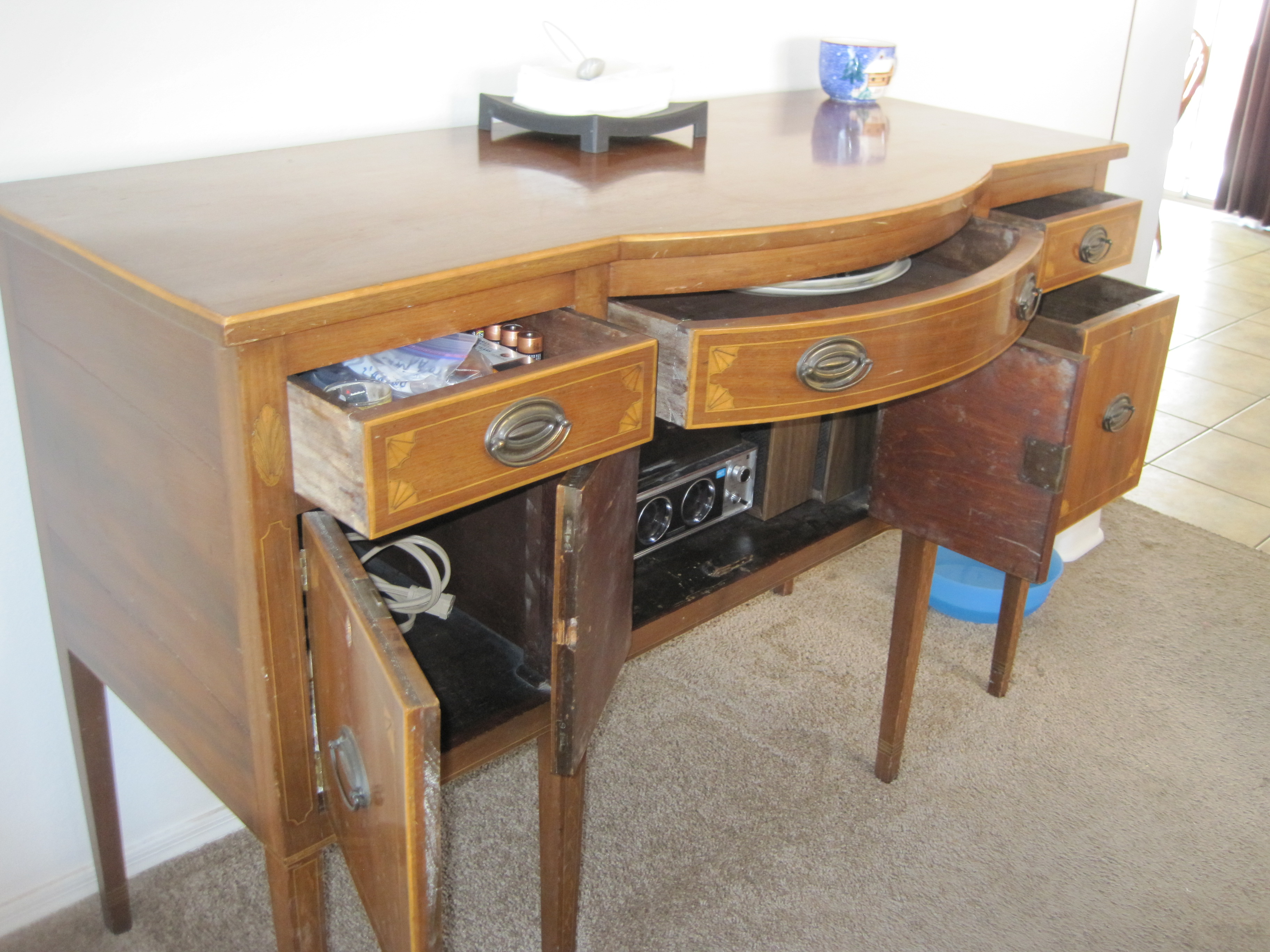 I obtained this beautiful buffet from a co-worker many years ago. I have never really found out what the origin of it is or how much it's valued at. I've looked all over this piece for any time of stamp or inscription - - I have found nothing. The measurements are 39.5 h x 22 d x 58 w. Would love any hints or tips on the value of the this piece is and who made it, year, etc. Thanks so much!!