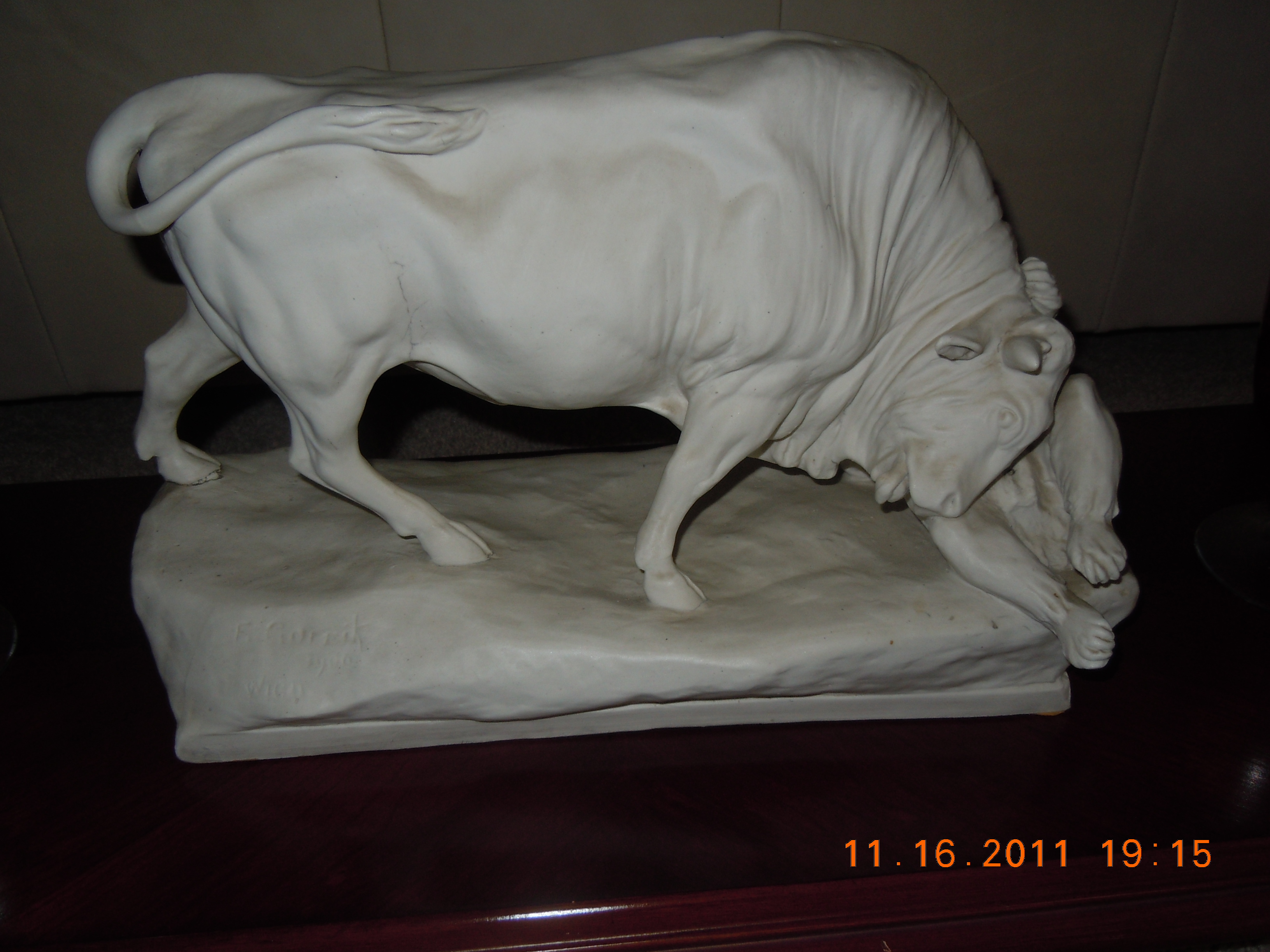 This is a sculpture of a Bull fighting a Bear. It has been in my family for over 100 years. My 89 year old Aunt gave this to me and said that it was brought to the United States from Austria many years ago by our ancestors. When she was just a little girl, she remembers seeing it on her grandmothers piano. It is signed and dated and has markings on the bottom of it. If there is a way I can send pictures of the markings on the bottom, I will. I believe it is most important to see this as well. I am interested in knowing the history of this sculpture, and if it is of any value. If there is value, then there may be the option to sell in the future. Thank You, S.H.