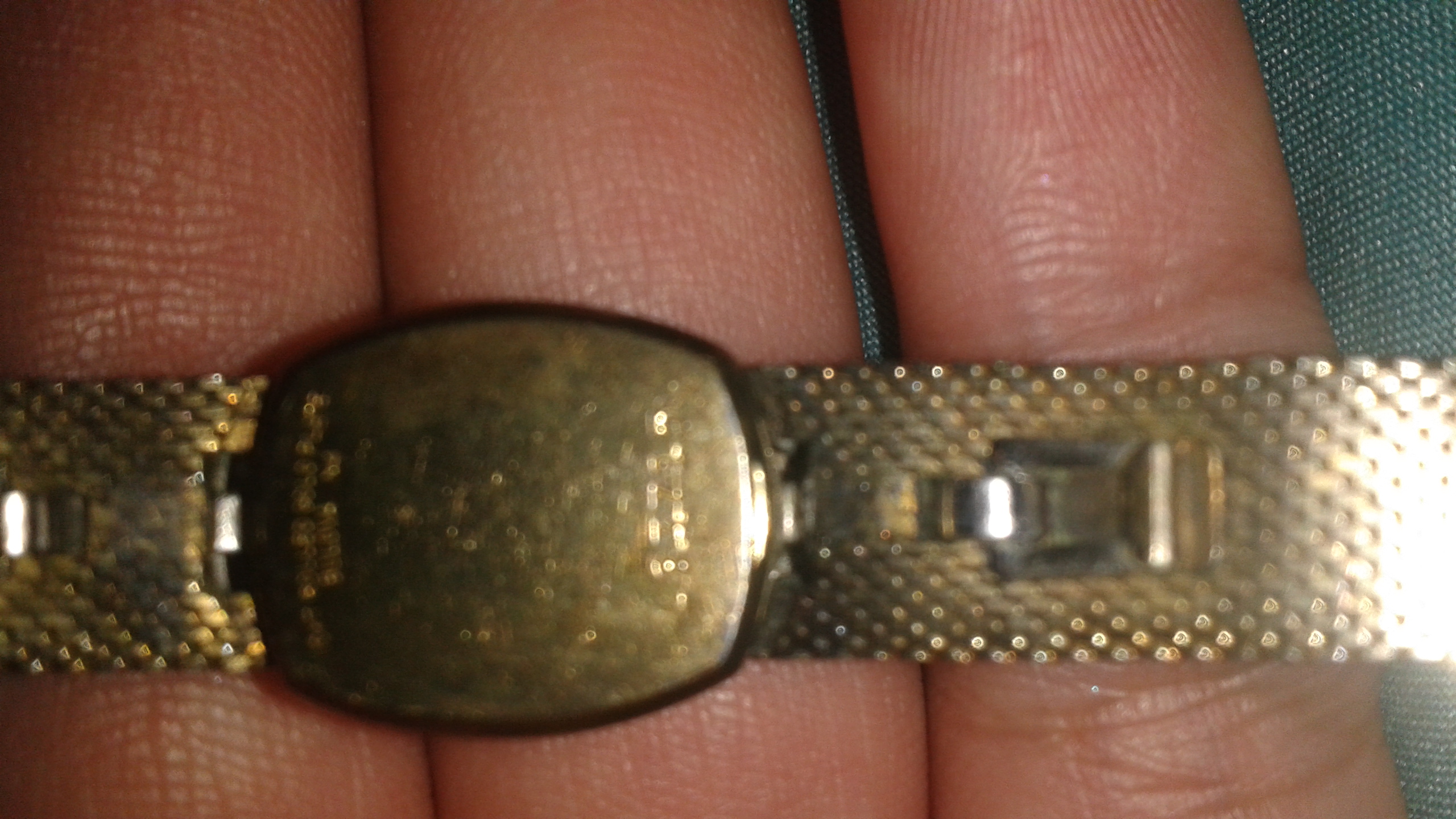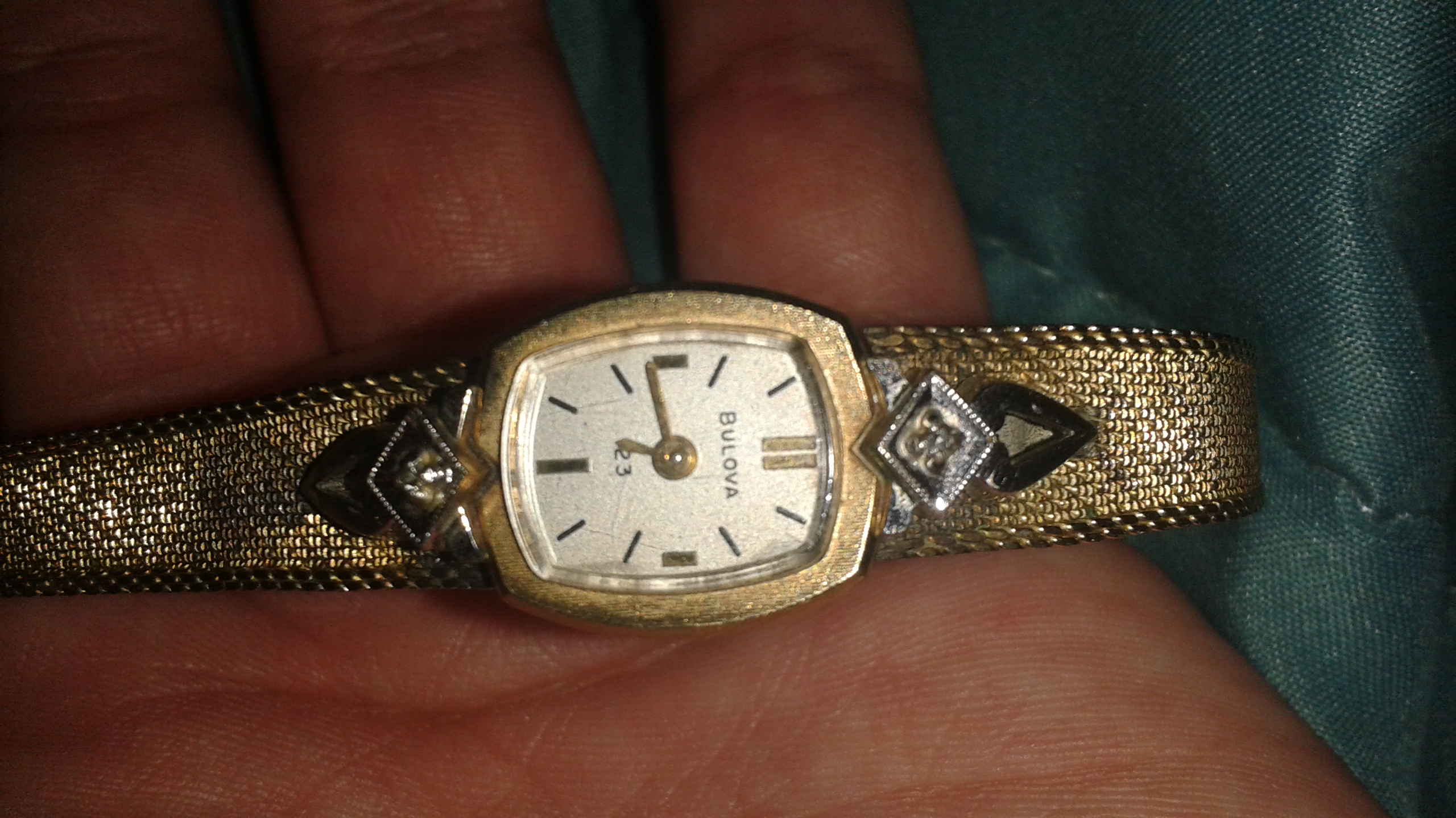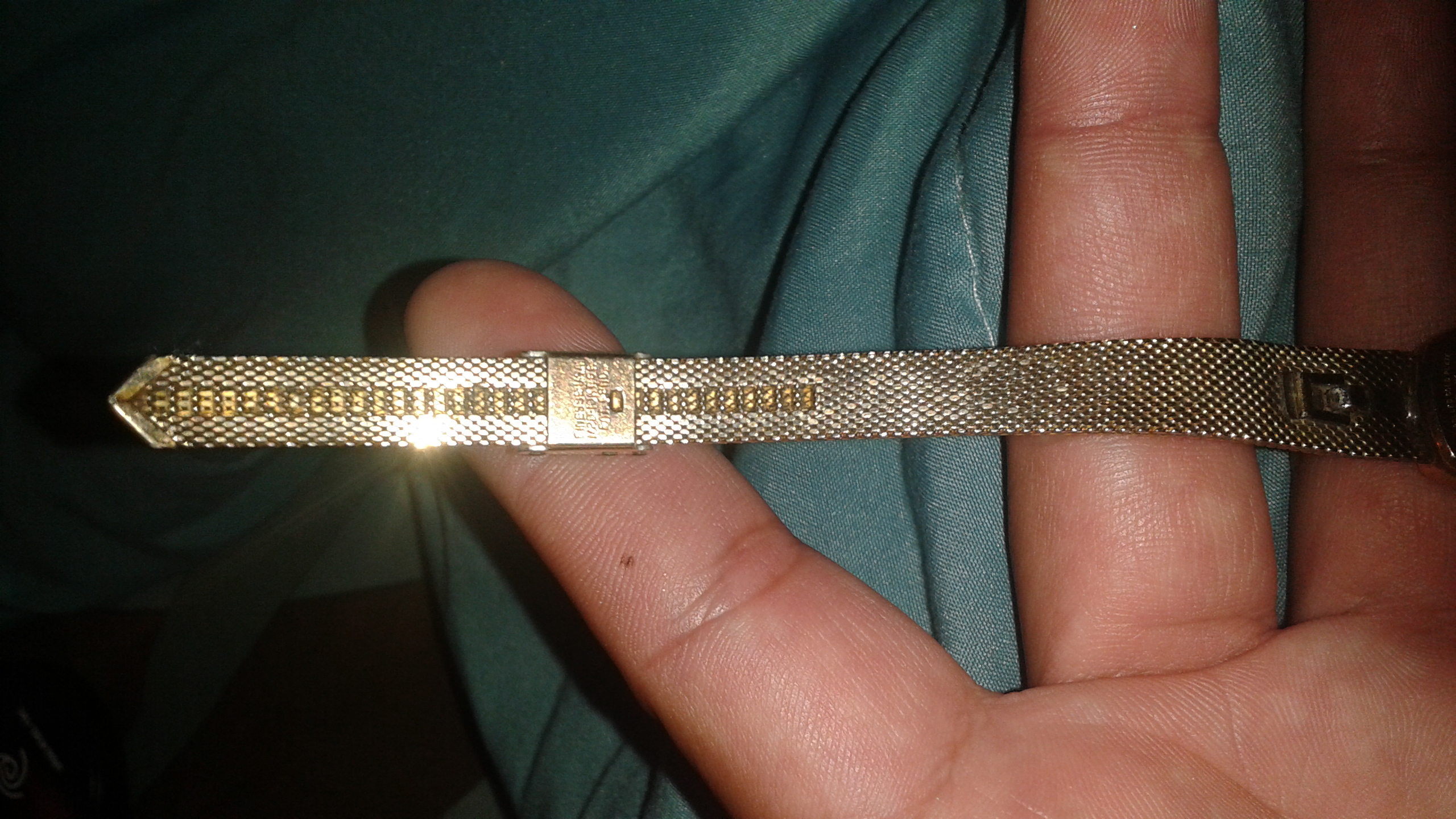 10k rolled solid plate it has a number on back L83715 it has silver on the ends of the face of watch with a diamond in the middle it was my grandmothers