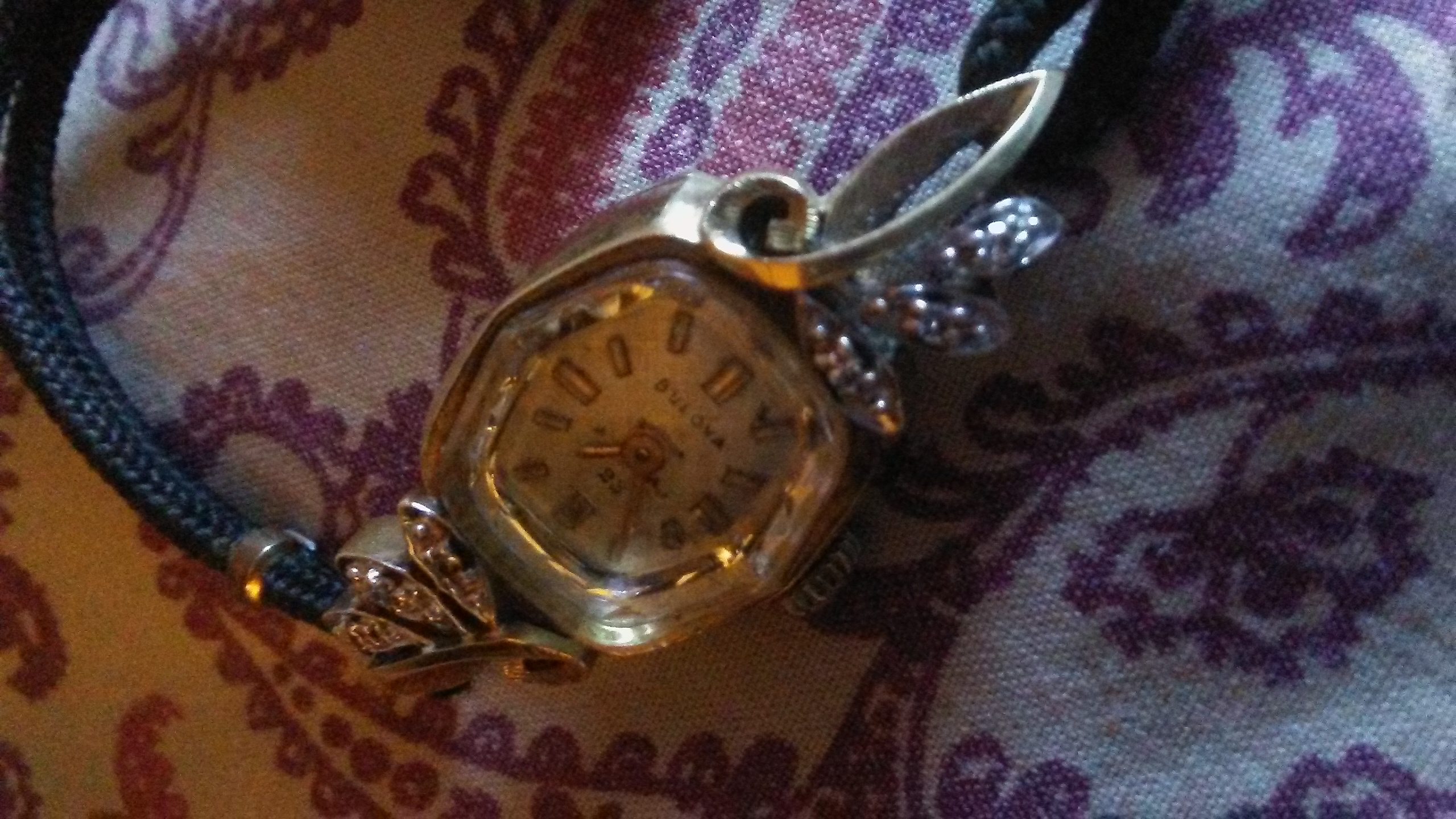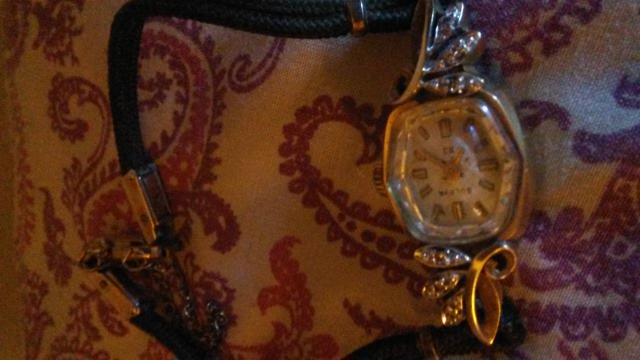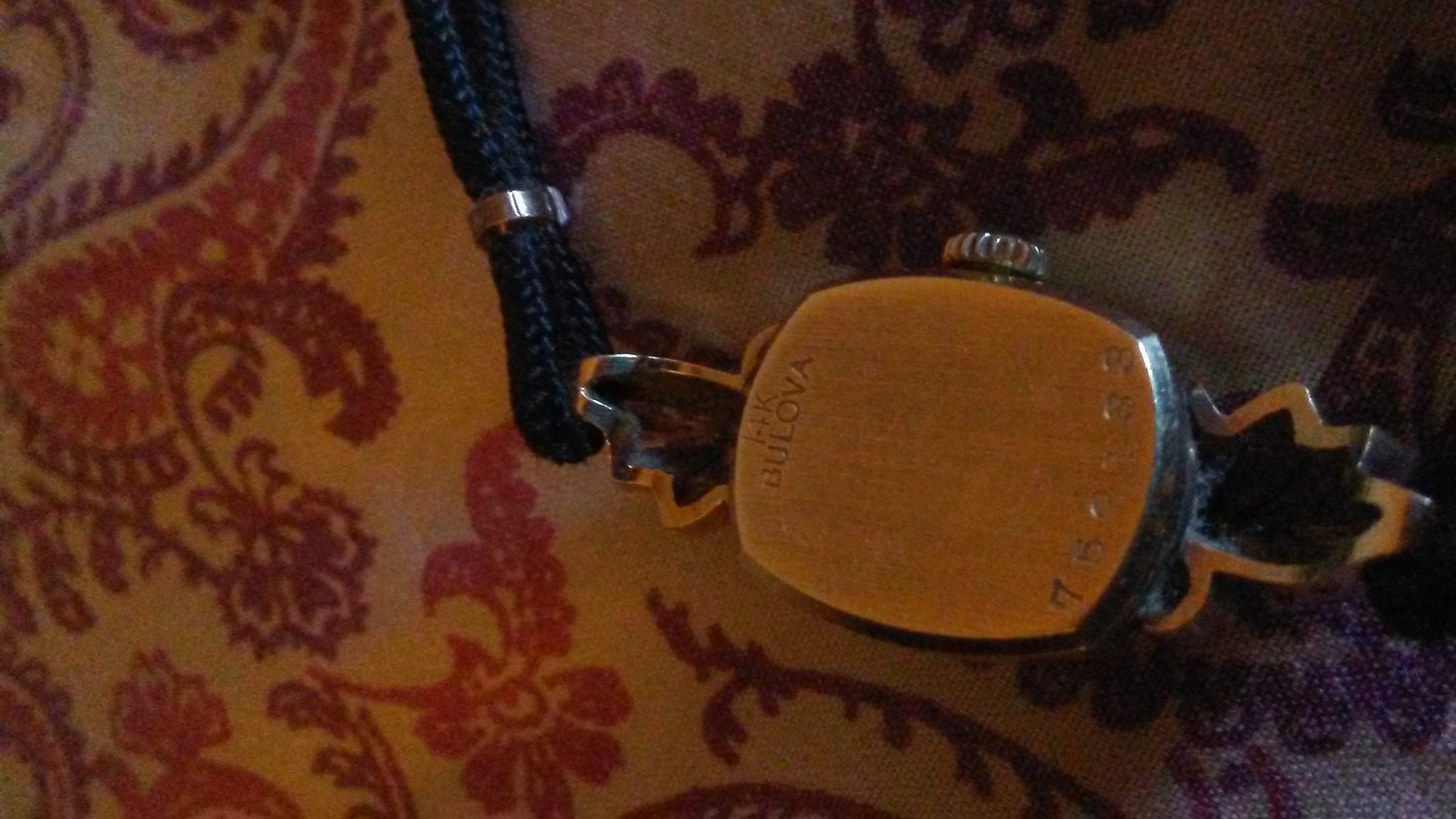 Description Boulva watch 14k gold. No.752133 it have diamonds on the front. It still works it still keeps time.