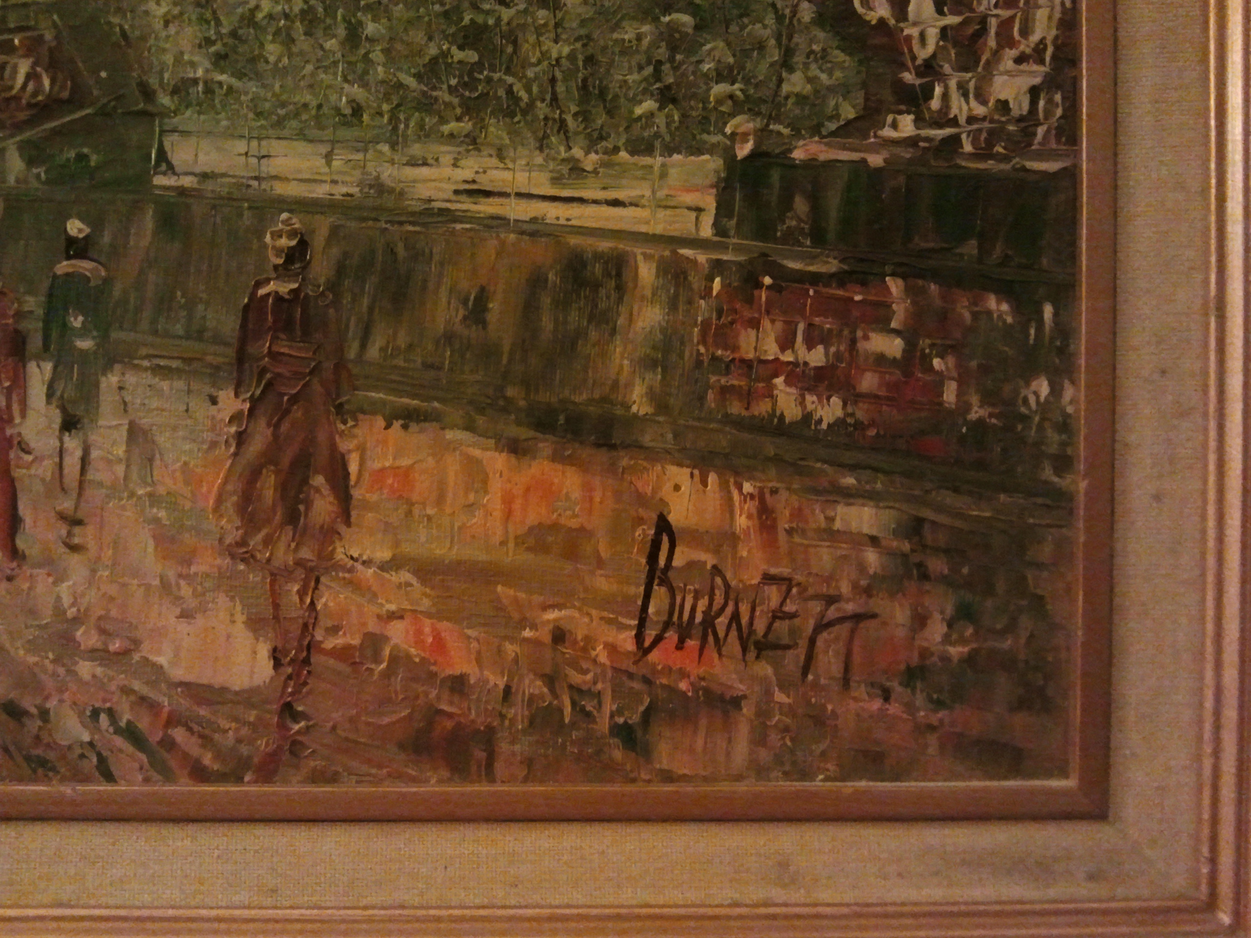 This is a Burnett oil canvas painting..dont really know anything about the history. I would like to know how much this painting is worth..some of her paintings sold for over 1,000 some did not..I would like to sell but not sure what price I should sell for. Painting is in great condition could use a better frame.