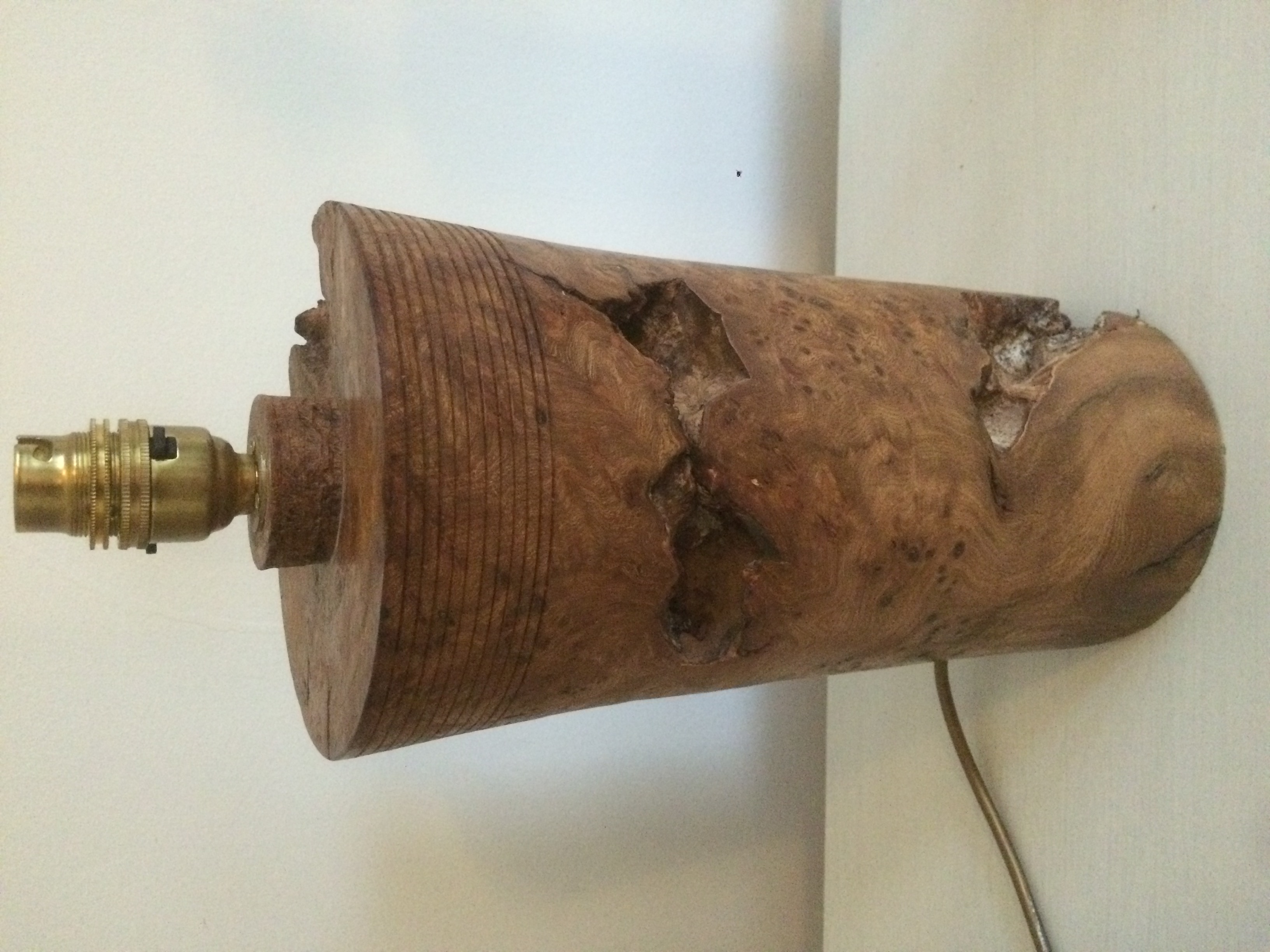 Burr wood lamp, elm or oak i thin. 26cm high, 16cm diameter. Excellent condition