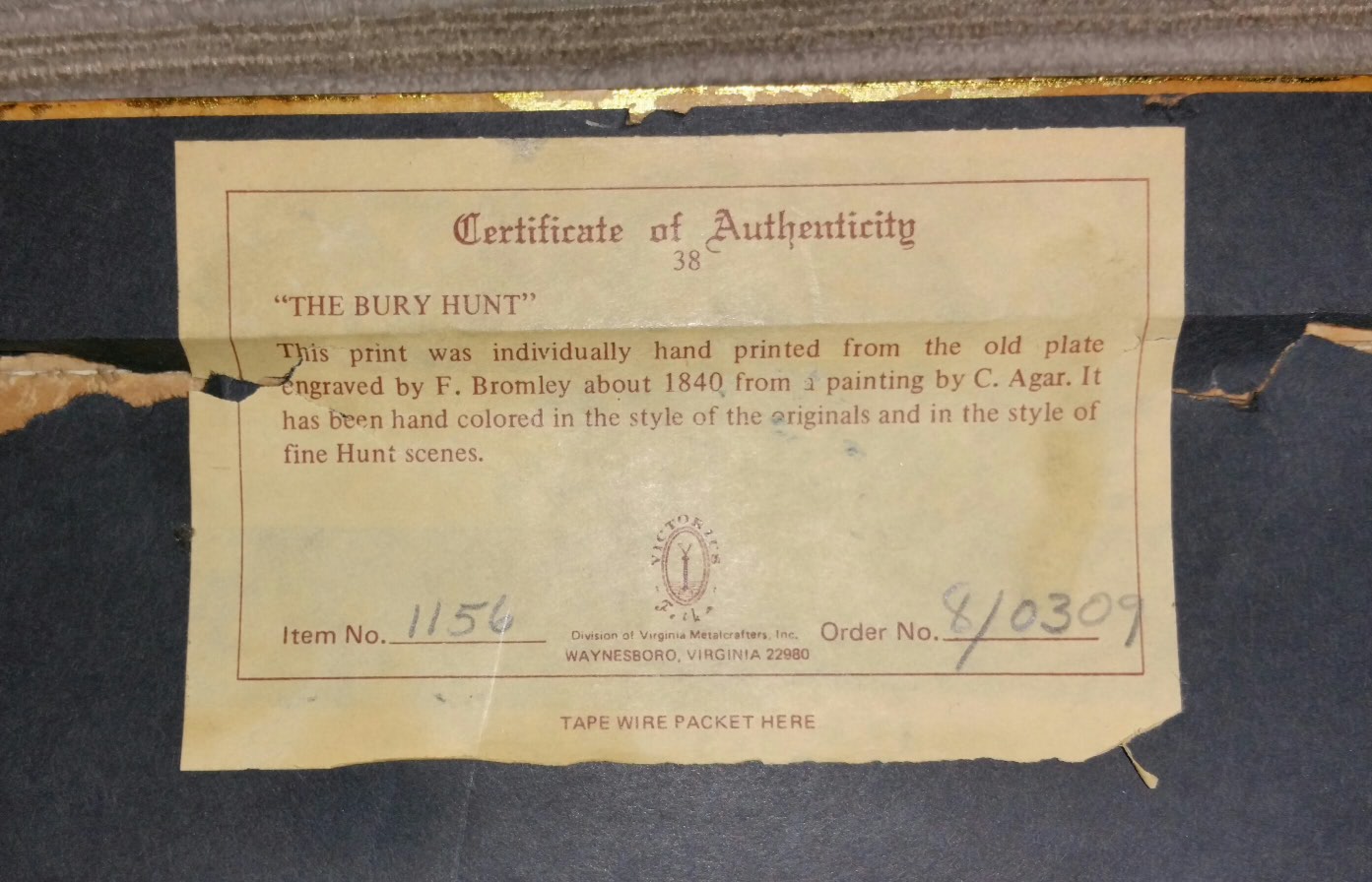 "The Bury Hunt" engraved