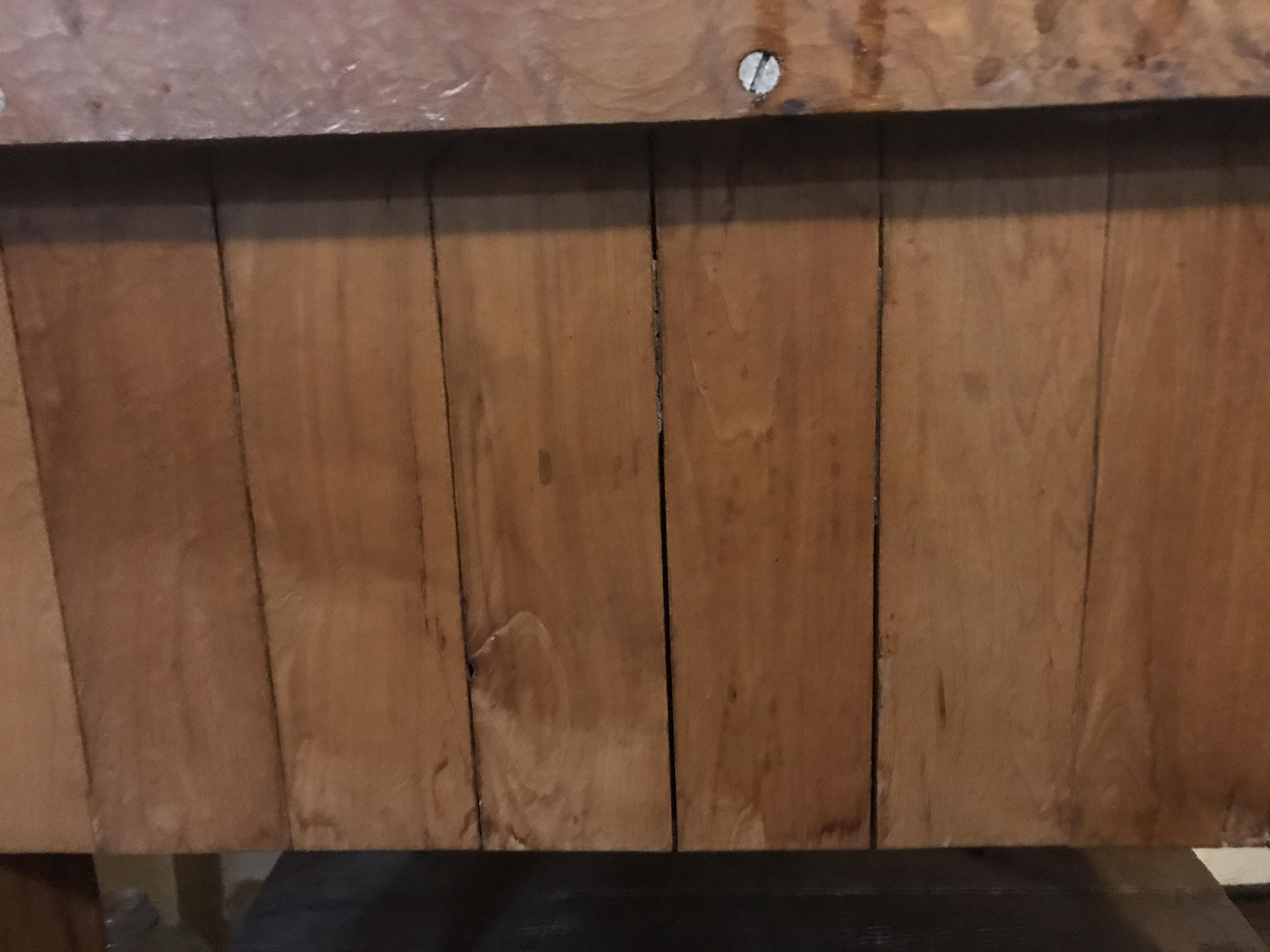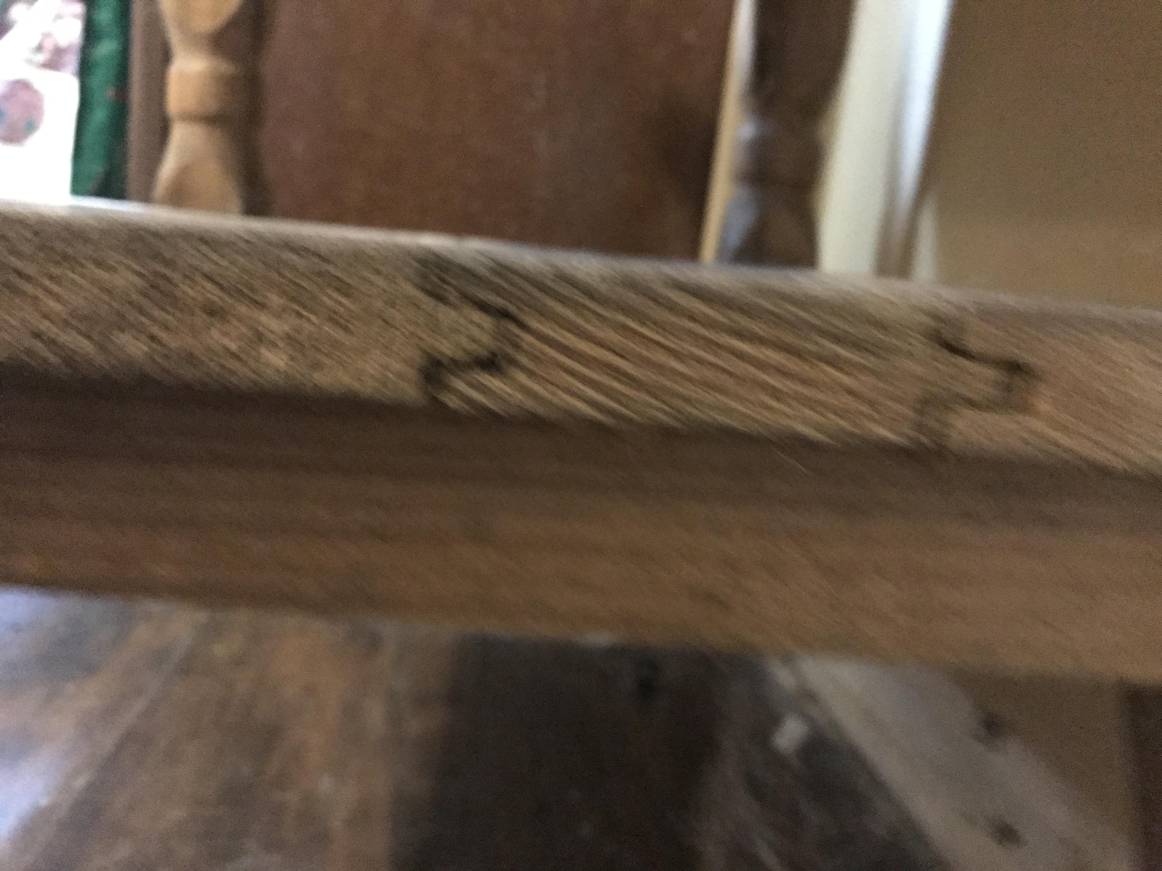 The top looks like it was added latter, usually blocks like this are end grain up. They do get pretty rough looking and people try and level the tops up.. Do you have a view of the under side looking up?