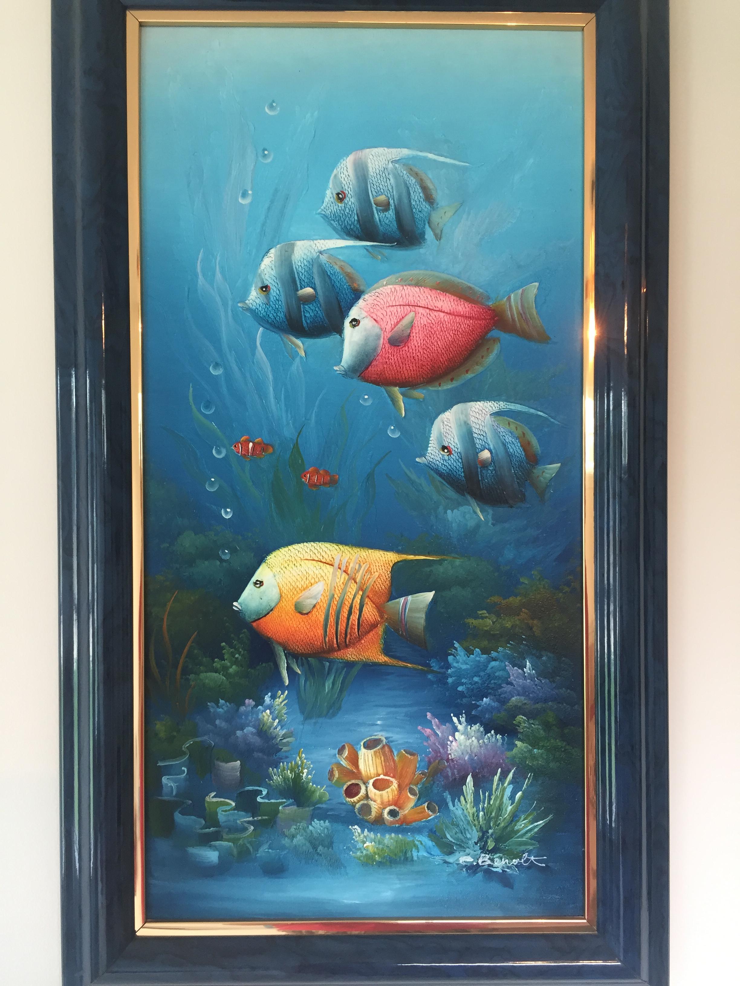 Two 12 x 24 C. Benolt raised oil paintings with tropical fish.