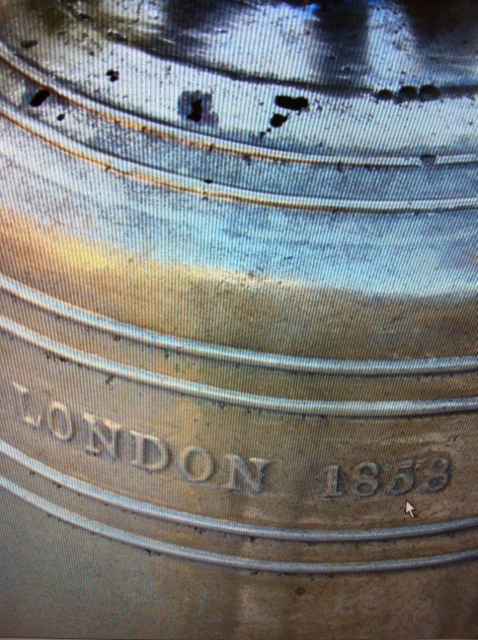 My husband found this bell in a creek. It is stamped "C & G Mears Founder London 1858" on the outside. I did find out that C & G Mears is currently called Whitechapel Foundry. I did verify from Whitechapel's website that during 1844-1861, the name C & G Mears was used. I also know what this bell was made at the same place and time (1858) as the Big Ben bell. And the Whitechapel foundry is also who made the Liberty Bell. This bell does not have a clapper.