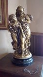 The statue has C Hennecke on it. It is labeled Hope - Fear. It is about 30 inches tall. girls with twigs. Arm was broken at some point and glued and it has been painted.