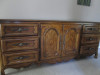 it is a nightstand in excellent condition. One pull out drawer and underneath that a cubby hole with two swinging doors. All solid wood. No idea what type but not a luxury wood. Carving on the legs and base. Brass handles.