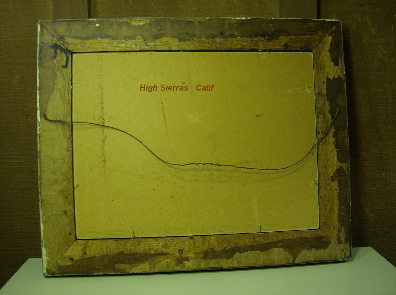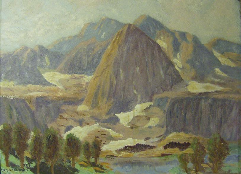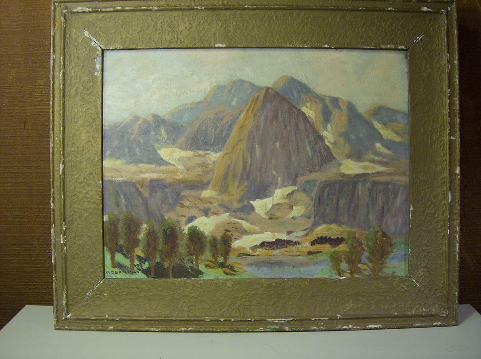 Signed by Wm. Brockman, this is an oil on board and if I had to guess around the `40s or `50s. On the back side written in pencil, "High Sierras Calif".