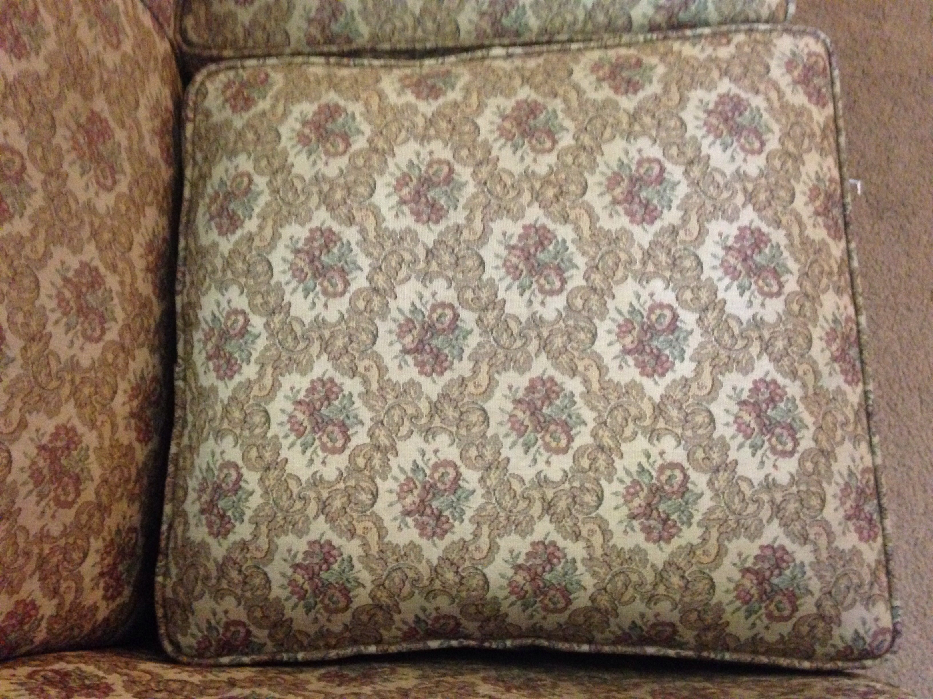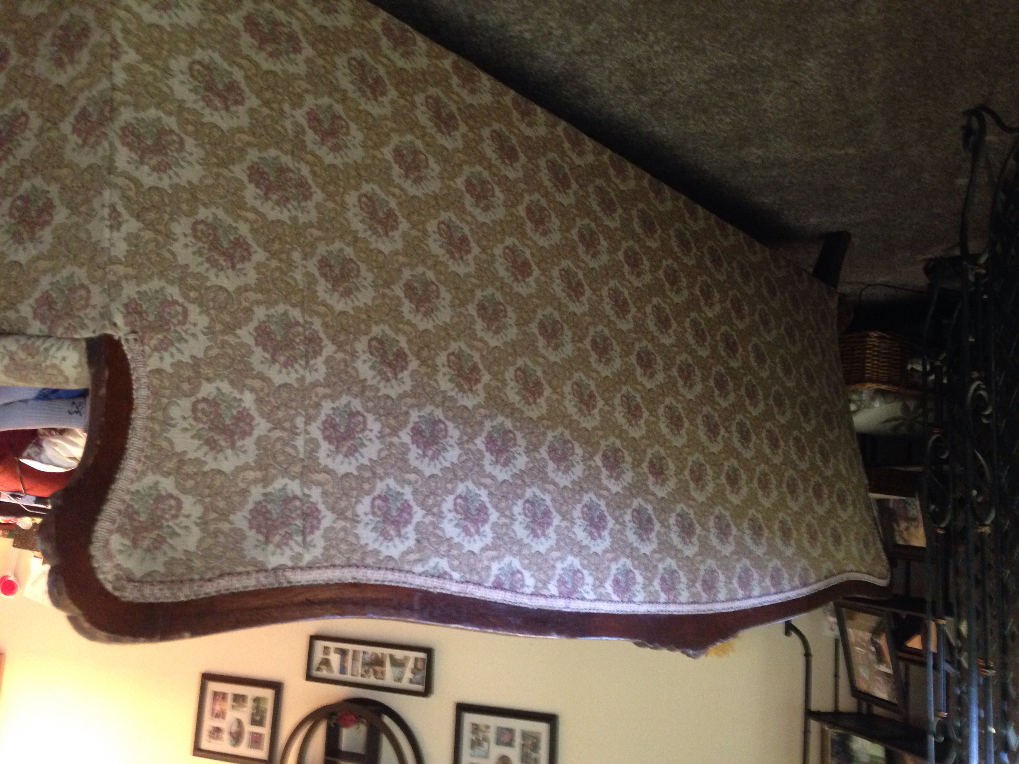 I don't know anything about this couch other than I was told its old. The cushions don't have zippers and are pretty heavy. 77in long x 32in deep x 32in tall. Cushions 21x23x6in. Back is upholstered and its sturdy.