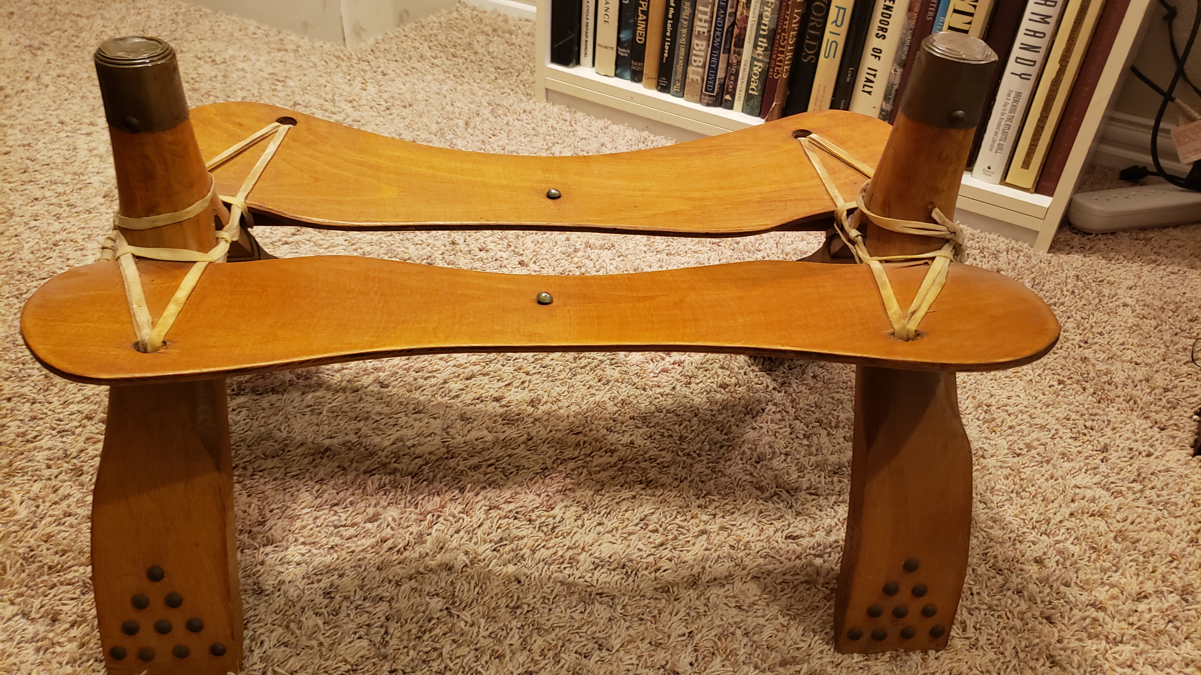 I enherited this camel saddle and I dont know much about it other than there is a trio of Egyptian women carved into the leather seat.