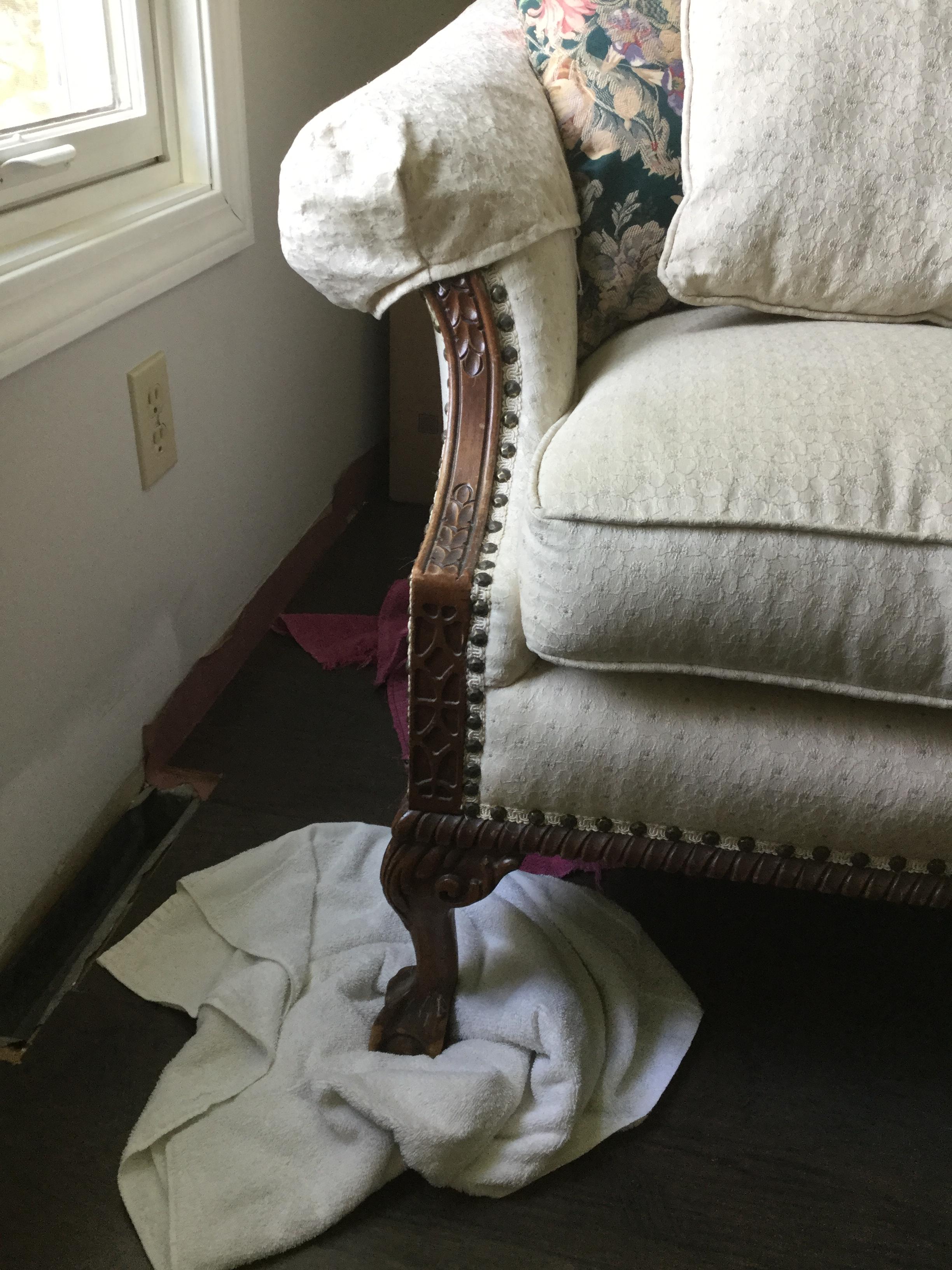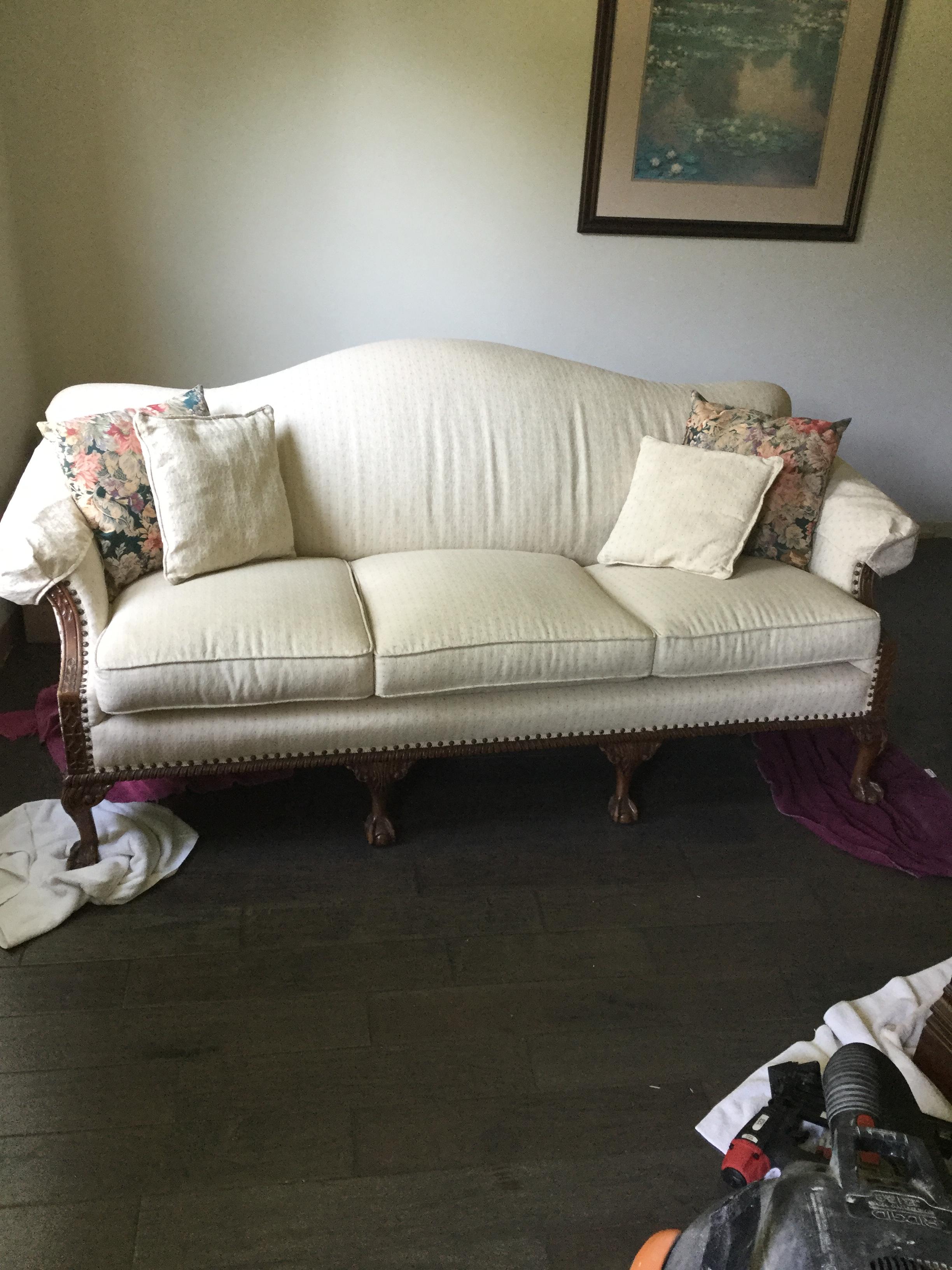Camelback Style sofa with clawed feet. Reupholstered. Not sure of the manufacturer. Looking for an estimated value.