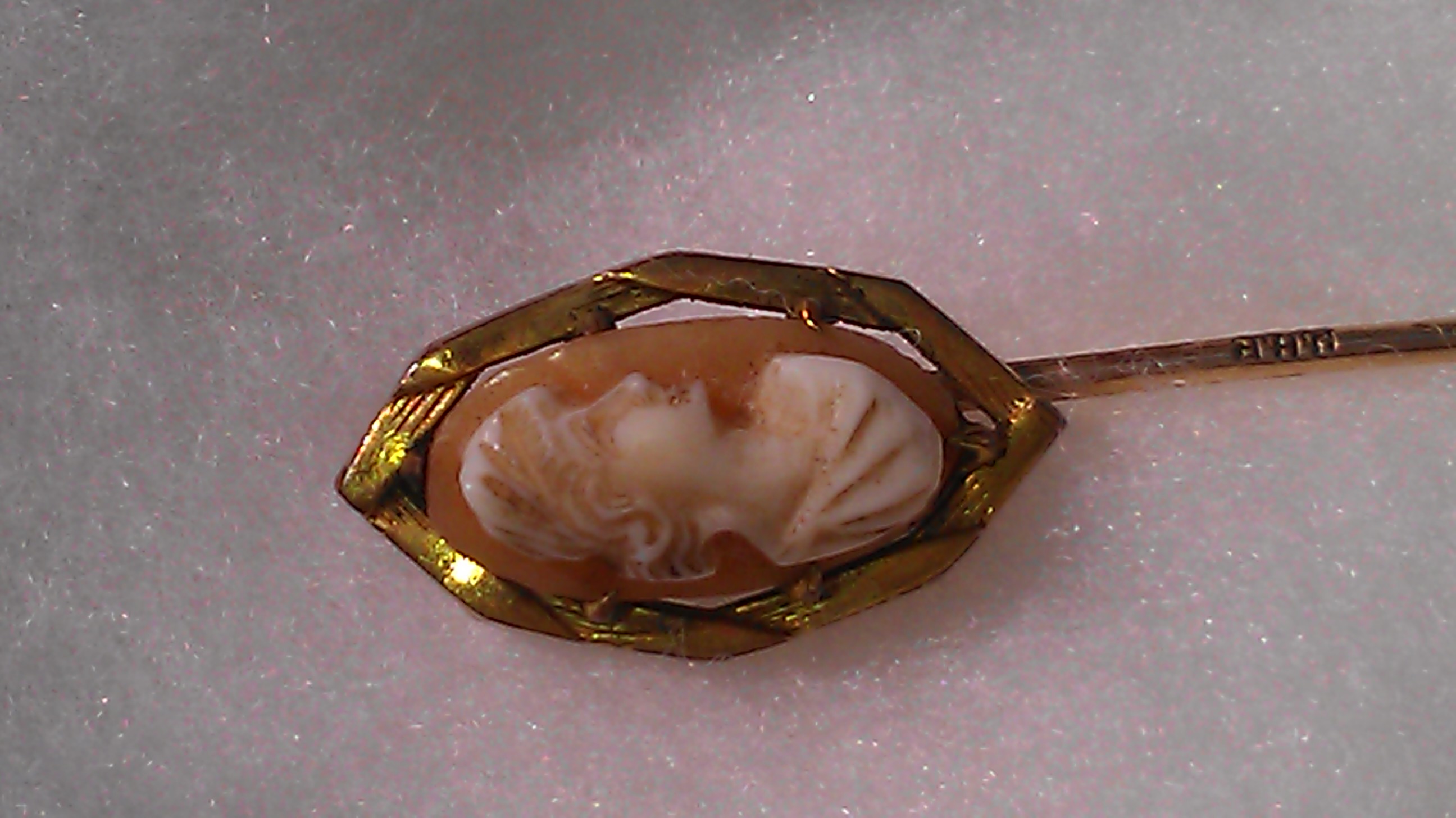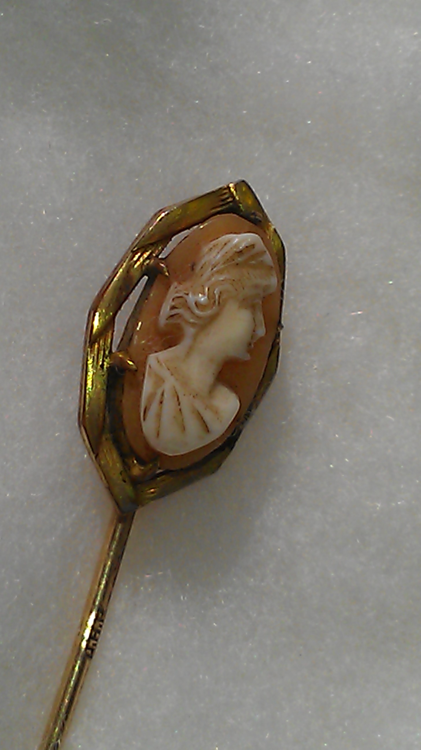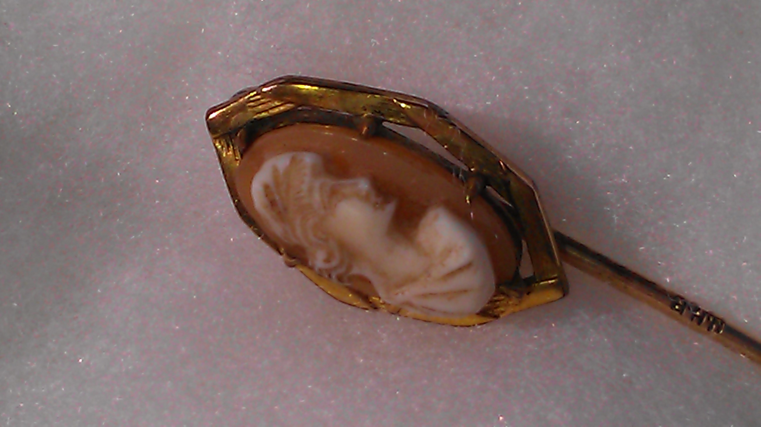 Cameo hat/stick pin that is signed JHP on the stem