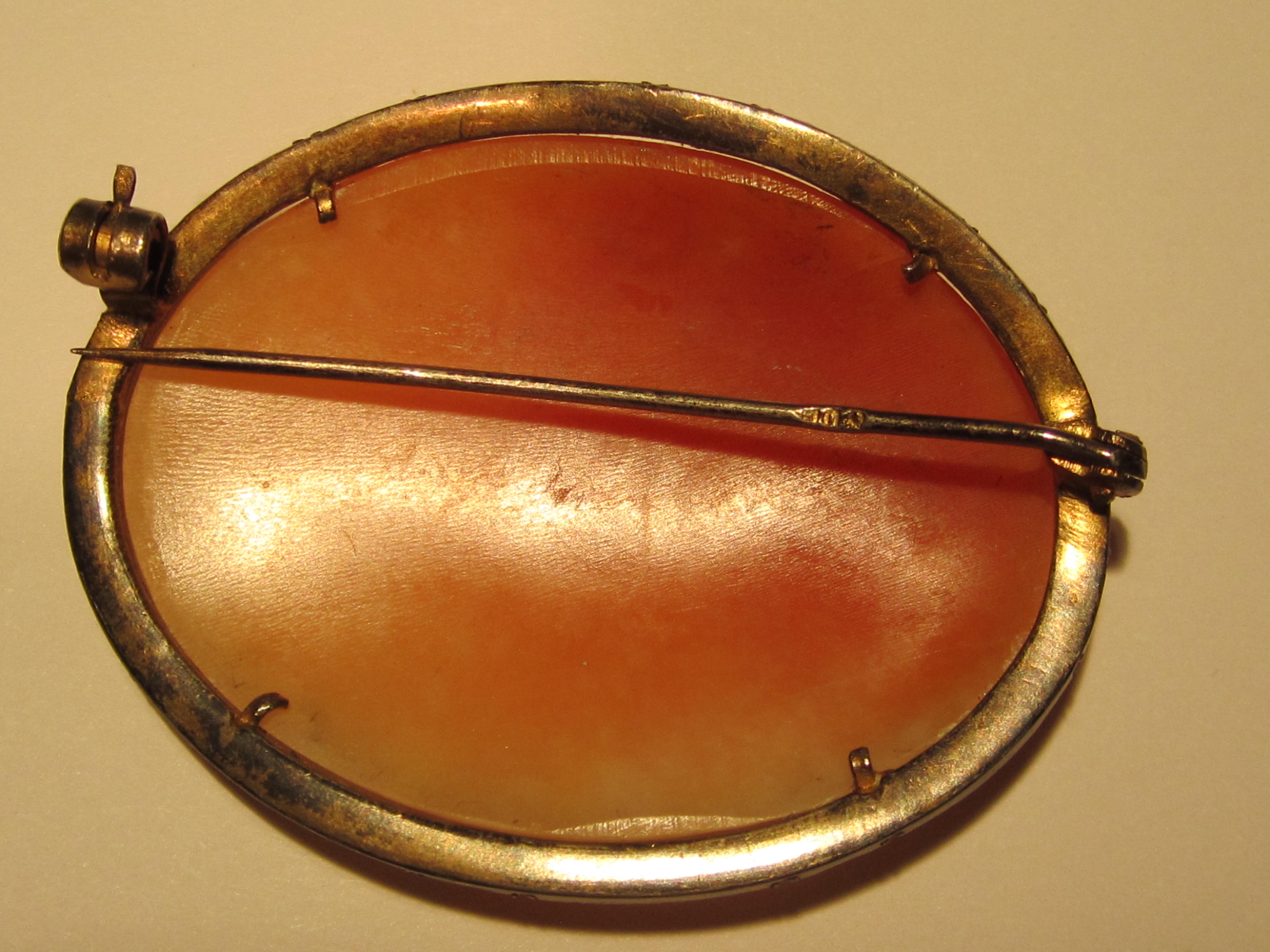 Guessing the vintage is circa 1900-1920. The most common type of "genuine" cameo material back then was sea shell. Less common were those carved from stone - agate, chalcedony or sardonyx. Among the most prized were those cameos carved from stone in the Idar-Oberstein region of Germany - they have quite a history of gem stone and lapidary art there.