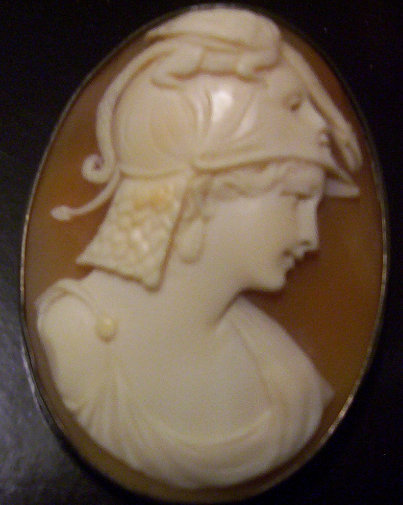 Re: Cameo Pin/ Pendant , Athena, Greek goddess with a dragon...