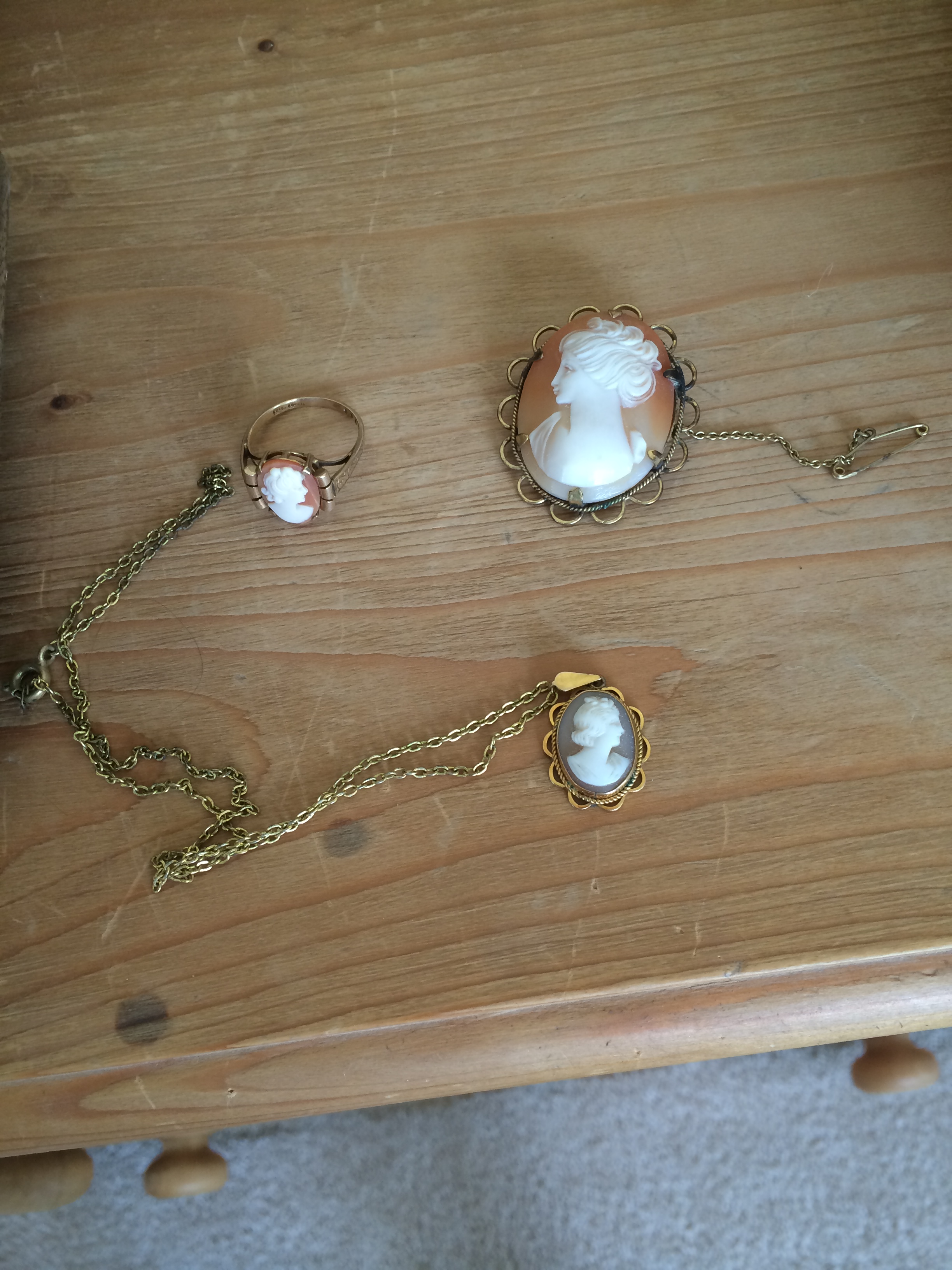 A three piece set in original settings and hardly worn. A matching set of ring, brooch and necklace.