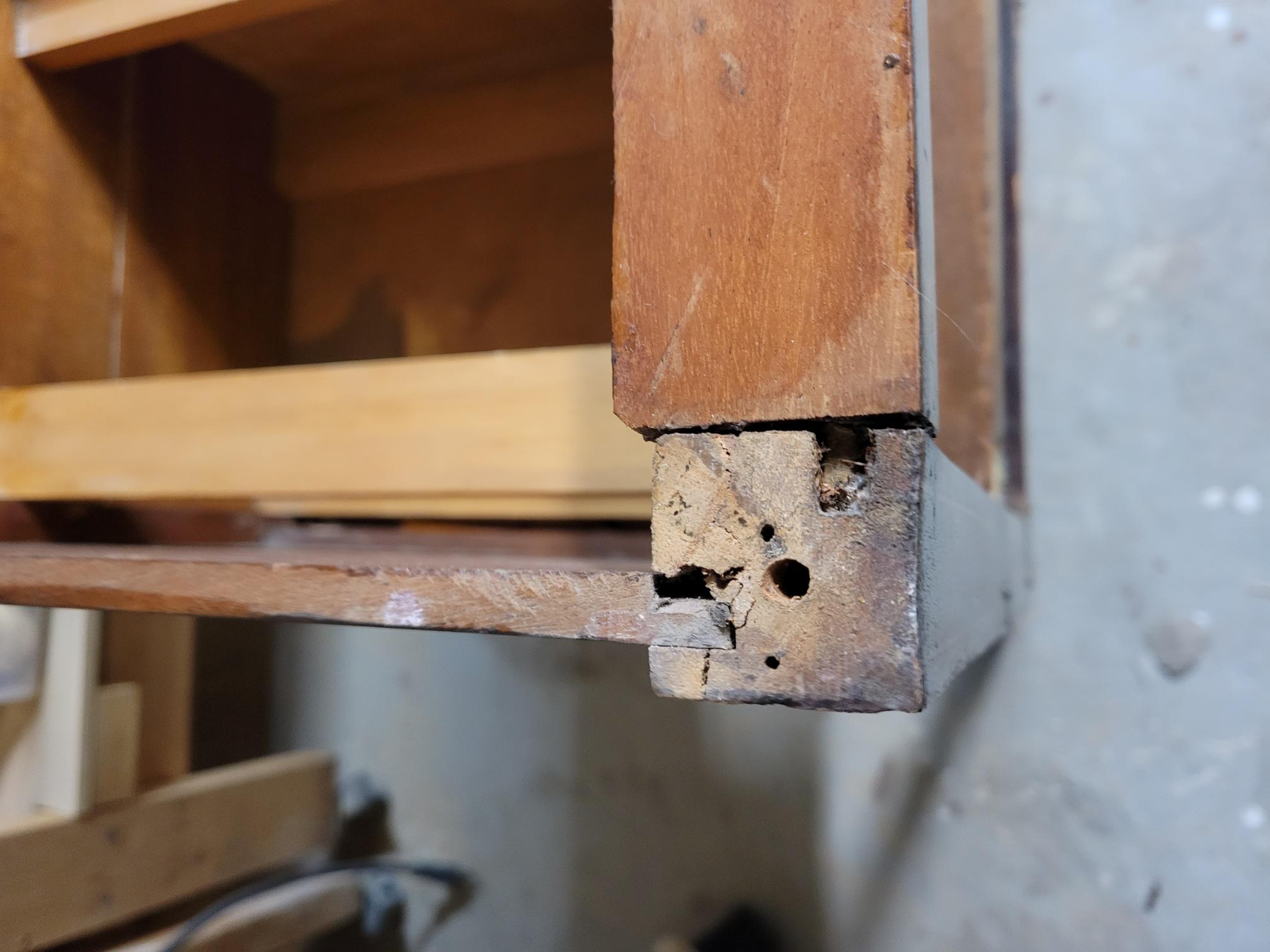 - Drawers were cedar with mahogany vaneer fronts. Machine cut dovetails and signs that the drawer bottoms were once lined with green felt. I had to stain the drawer fronts since the veneers were not exact colour matches. Drawers are likely not original.