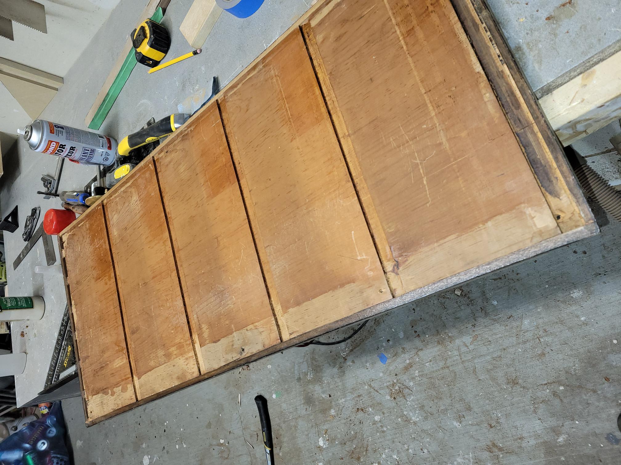 - Found 1946 and 85 scratched onto the back of the top. Indicated that it was made in 1946 in its current form in 1946 but refinished in 85. No indication of when the original desk carcus and original cedar chest were constructed. I may have devalued it but i couldn't help but to scratch 2022 next to these since i am now part of the desks story. I also wrote in pen a little message on the underside of the top for future restoration enthusiasts
