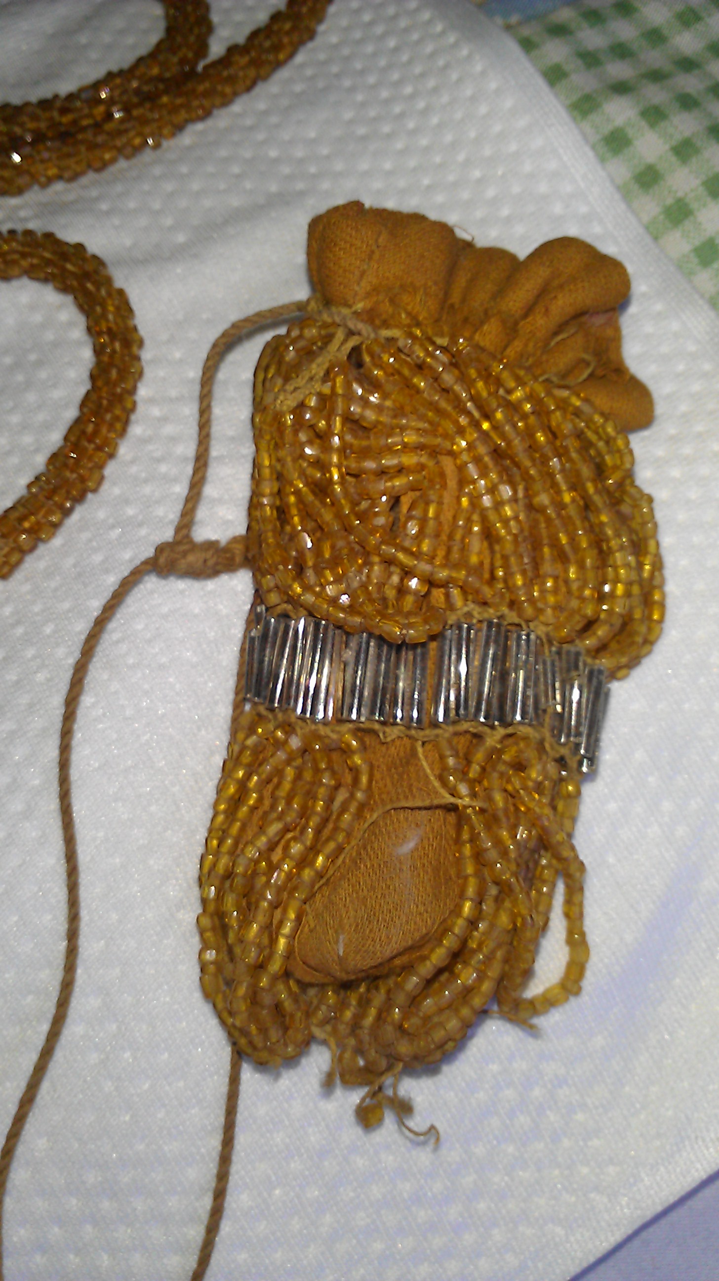 this is a bag that is to small to be used for about anything that i could think of. The "string" ( unsure what it is ) a necklace? or just an attachment for the bag somehow?