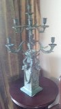 nine arm brass (patina finish) candelabra with sea serpent and scrolls