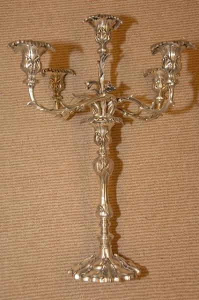 I have 2 of the matching candelabras. No markings I can see. Lovely detailing - the Candelabra comes apart and can be shortened. Anyone know anything more info.?