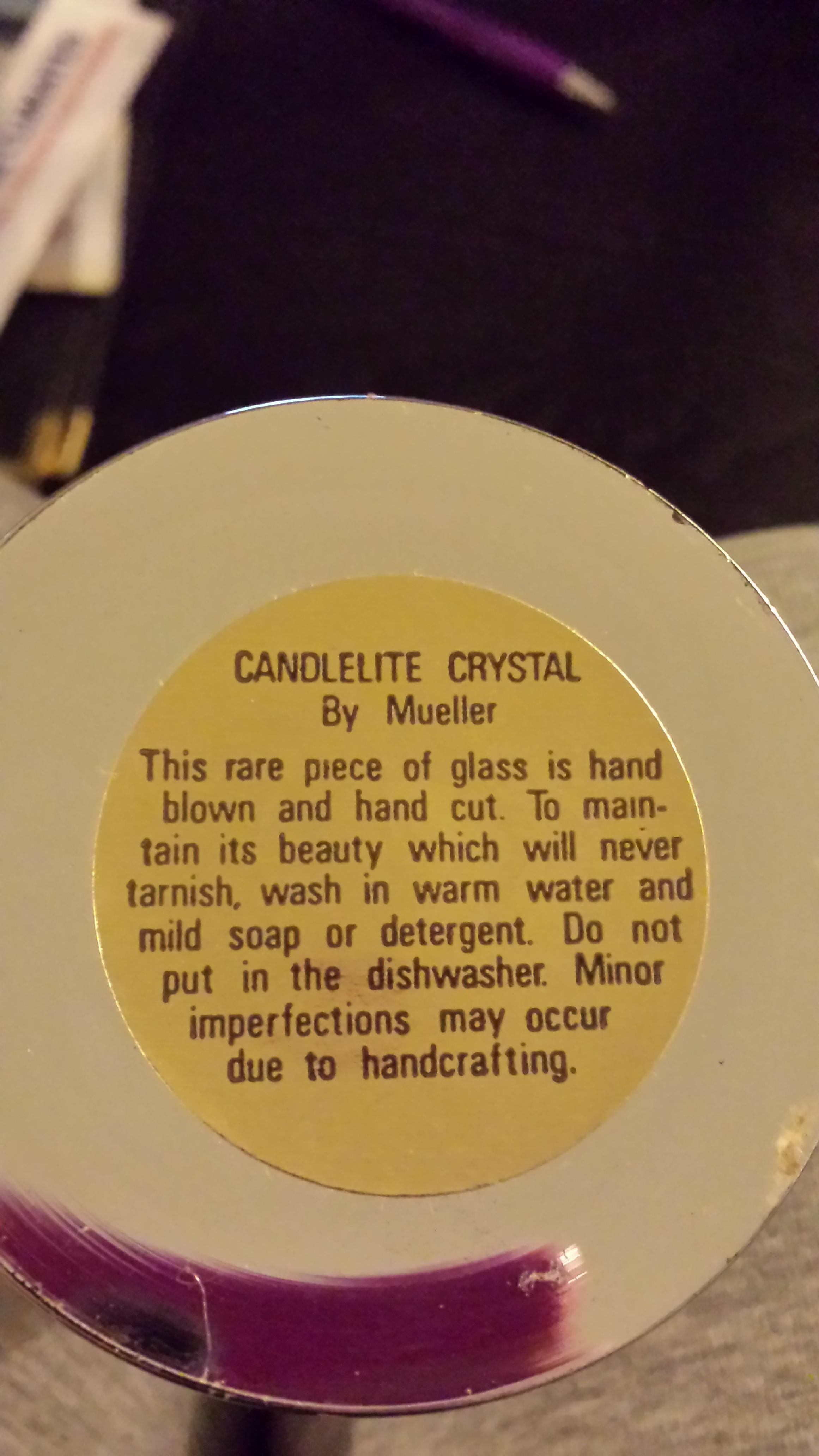 Bought at thrift store found items on ebay by Mueller that was hand crafted glass but nothing close to the exact piece. Thanks for looking!