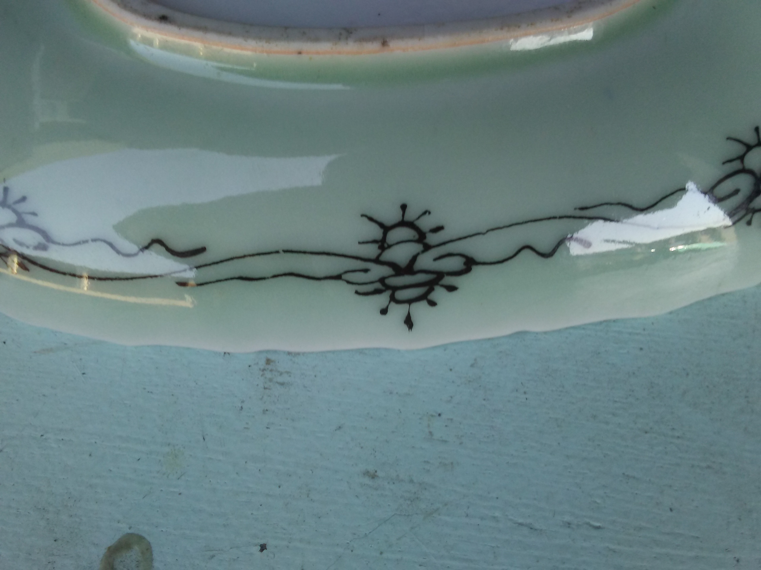 Years ago. Not sure if it is green paint or if the material its made of is green. No signature or obvious marking.