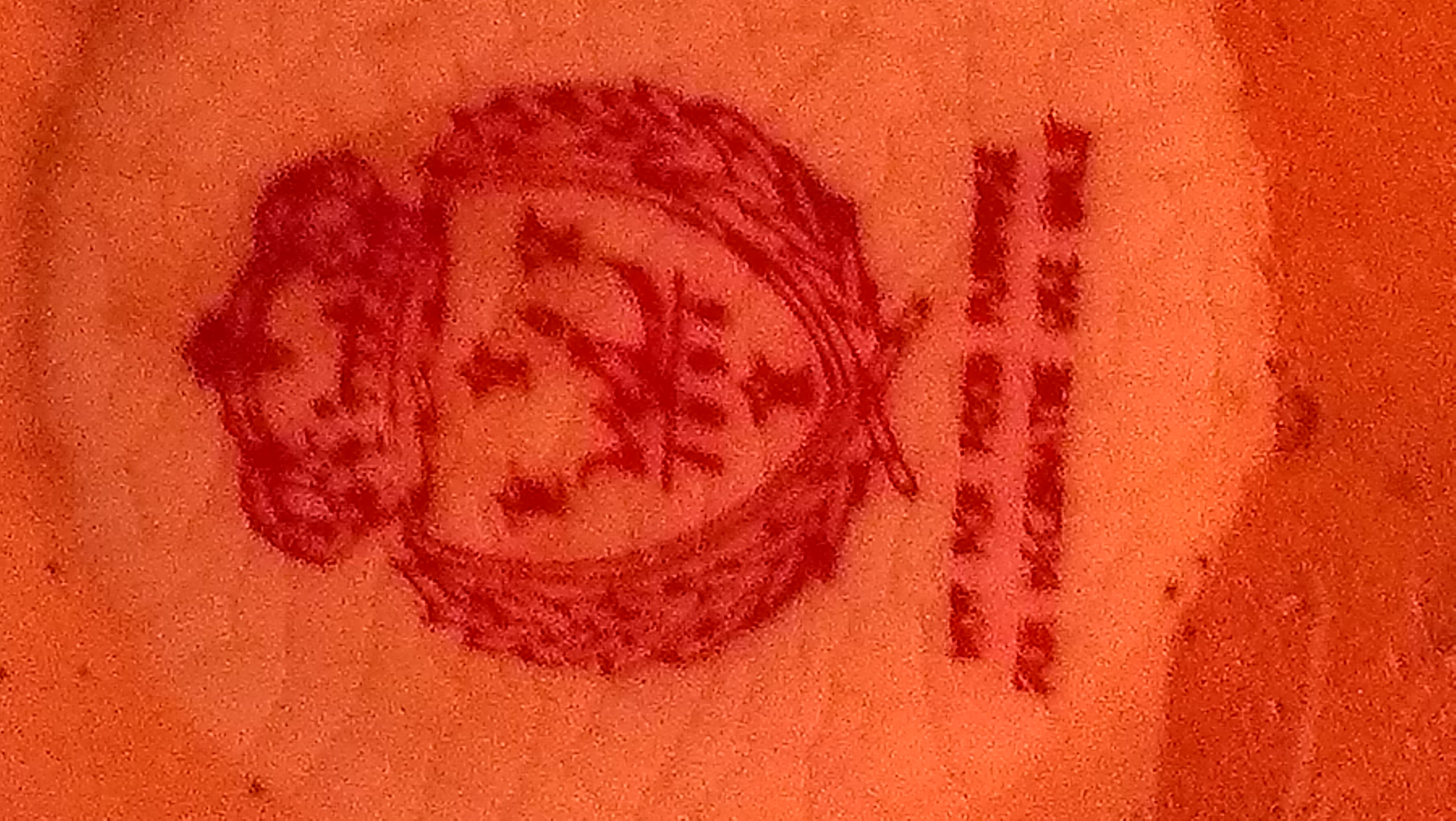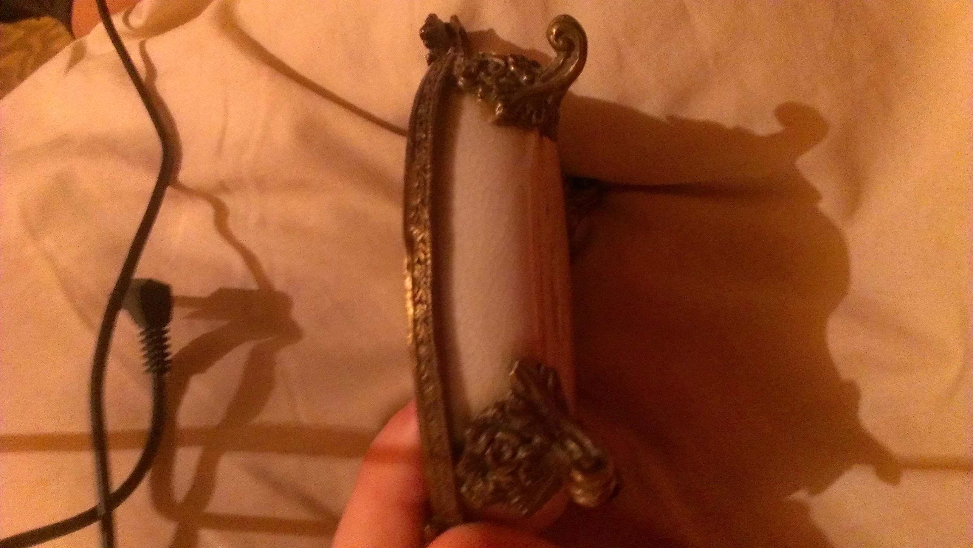 Small ceramic dish with bronze ring around with bronze legs and handles
