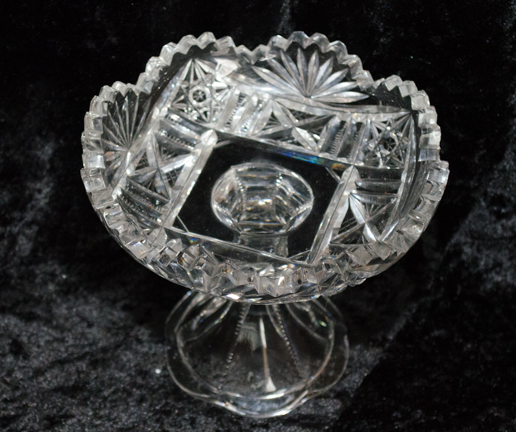 This was my grandmother's. She called it a candy dish. It has a star pattern inside with a somewhat "jagged" top.