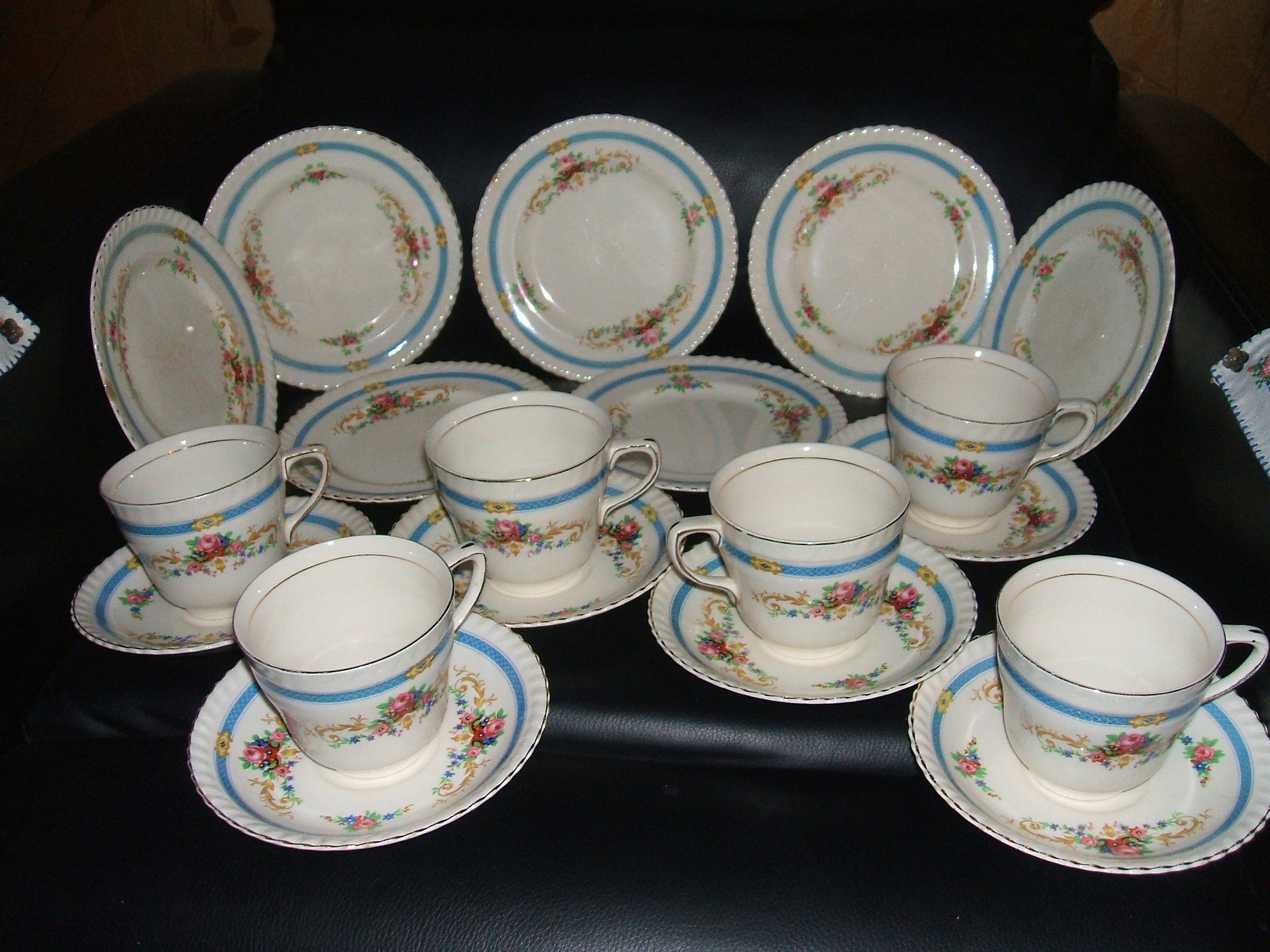 7 sandwich plates and 6 cups and saucers. Old English Johnsom Bros.