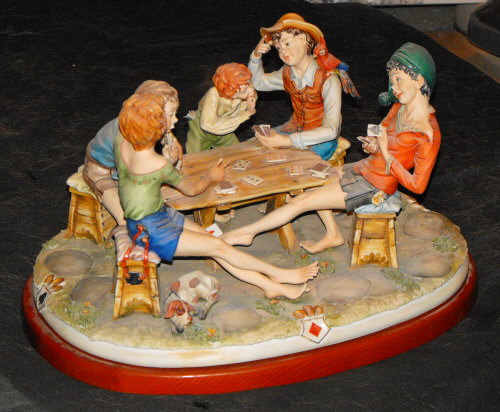 Figurine of five boys playing cards. Four cheaters with one boy observing. Cannot find any reference to this item.