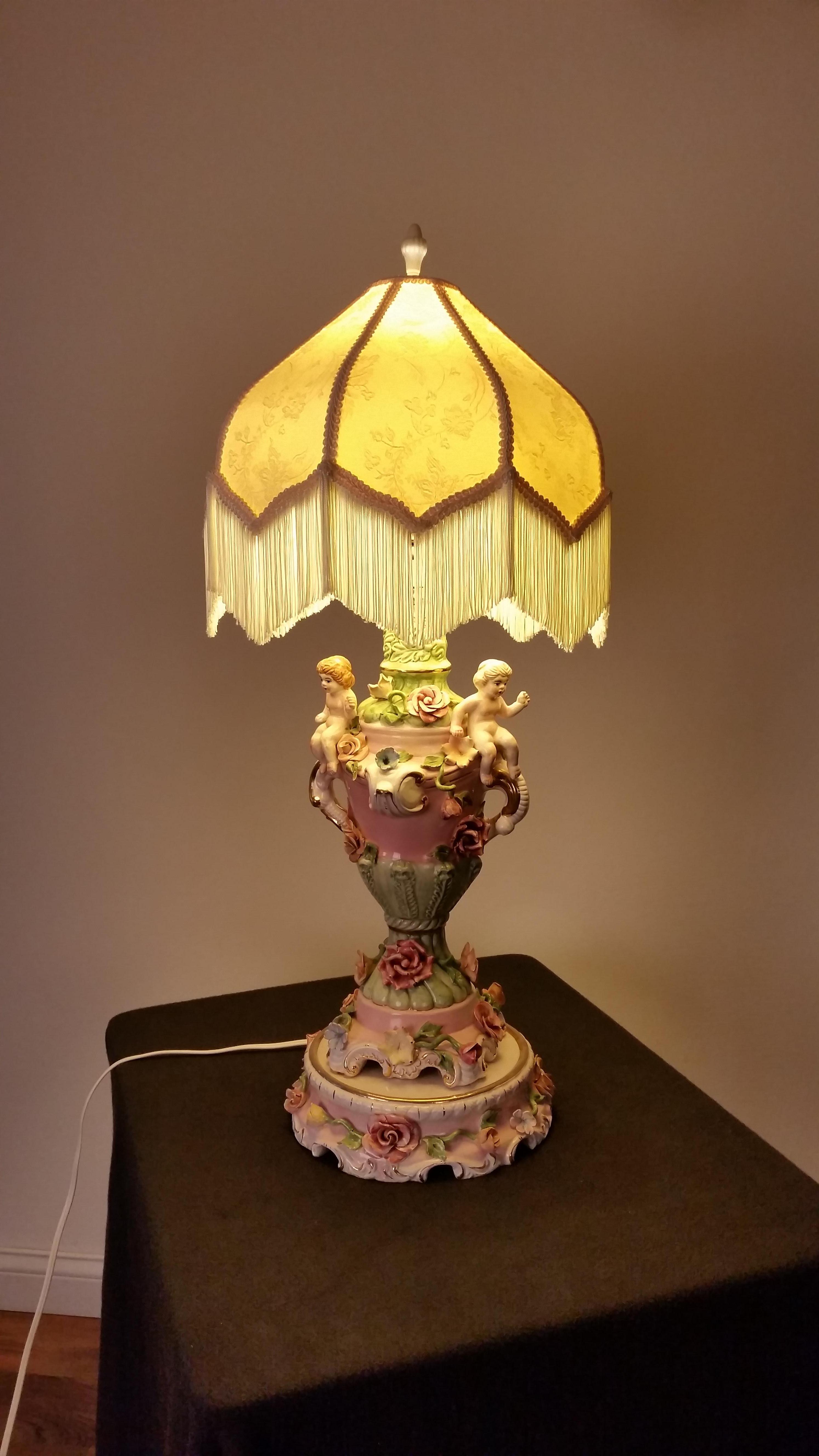 Capodimonte numbered porcelain cherub lamp. Excellent condition.