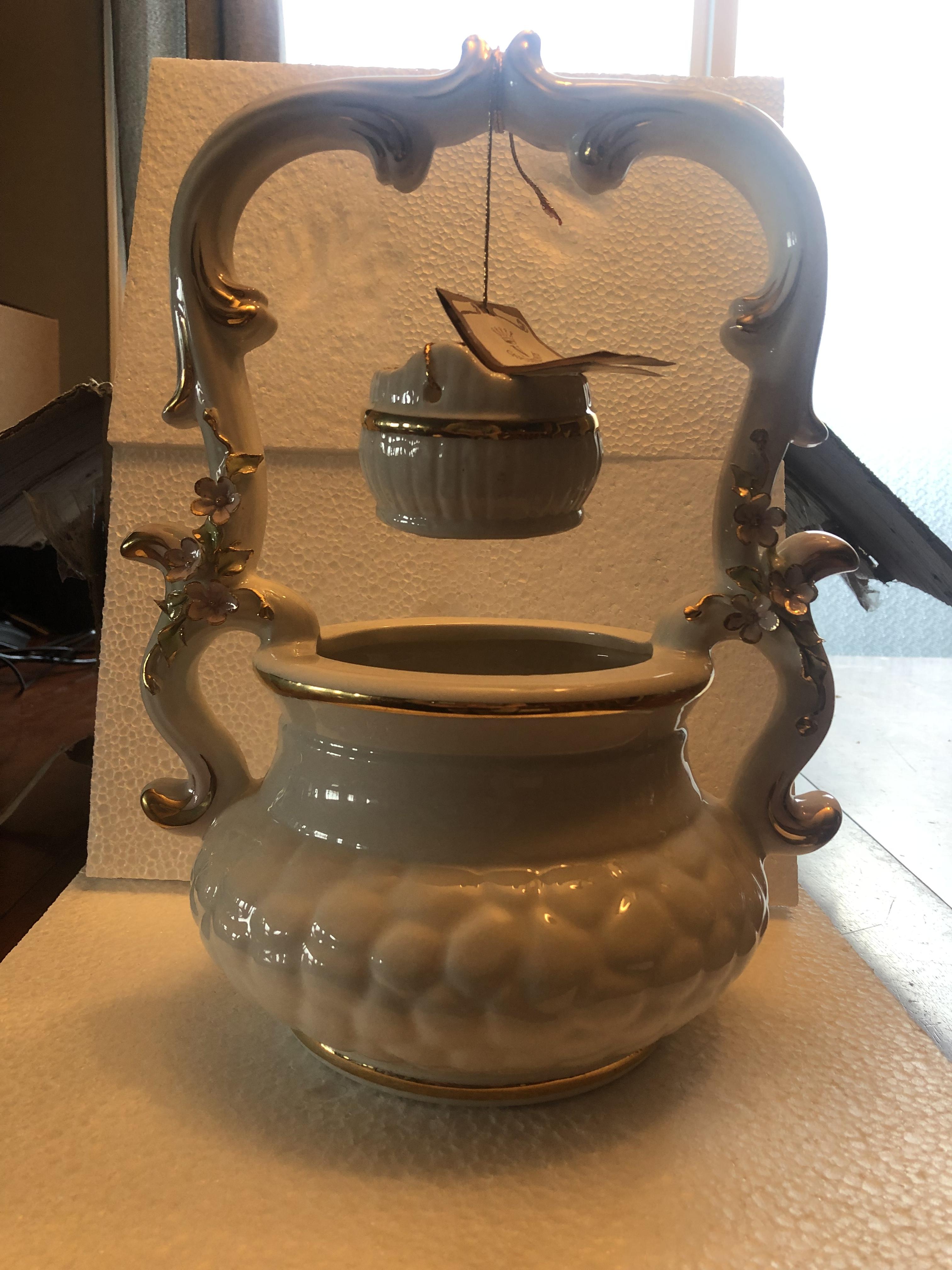 Capodimonte large wishing well. White with pastel flowers. 32cm high 24cm wide 10cm deep. Great condition. Has Capodimonte stamp with N and 5 point crown and made in Italy stamp.