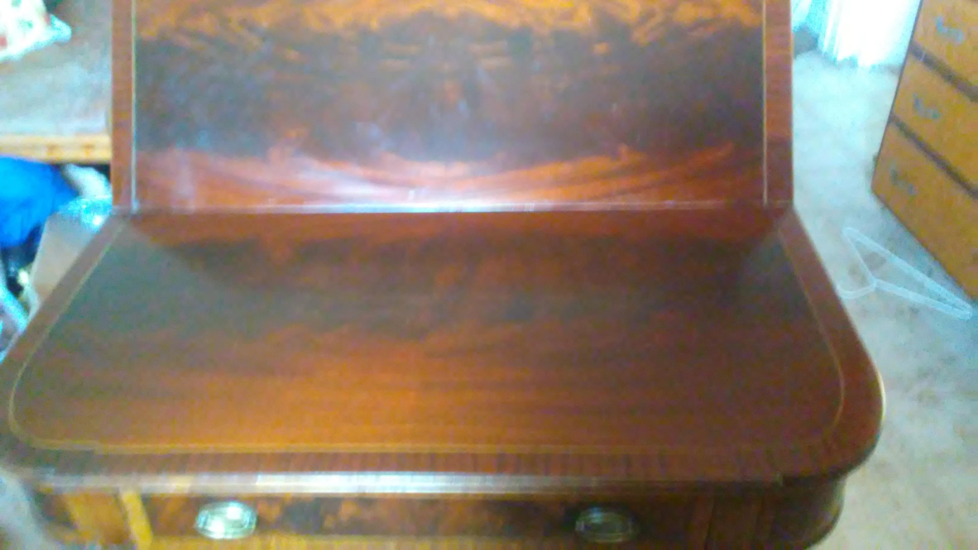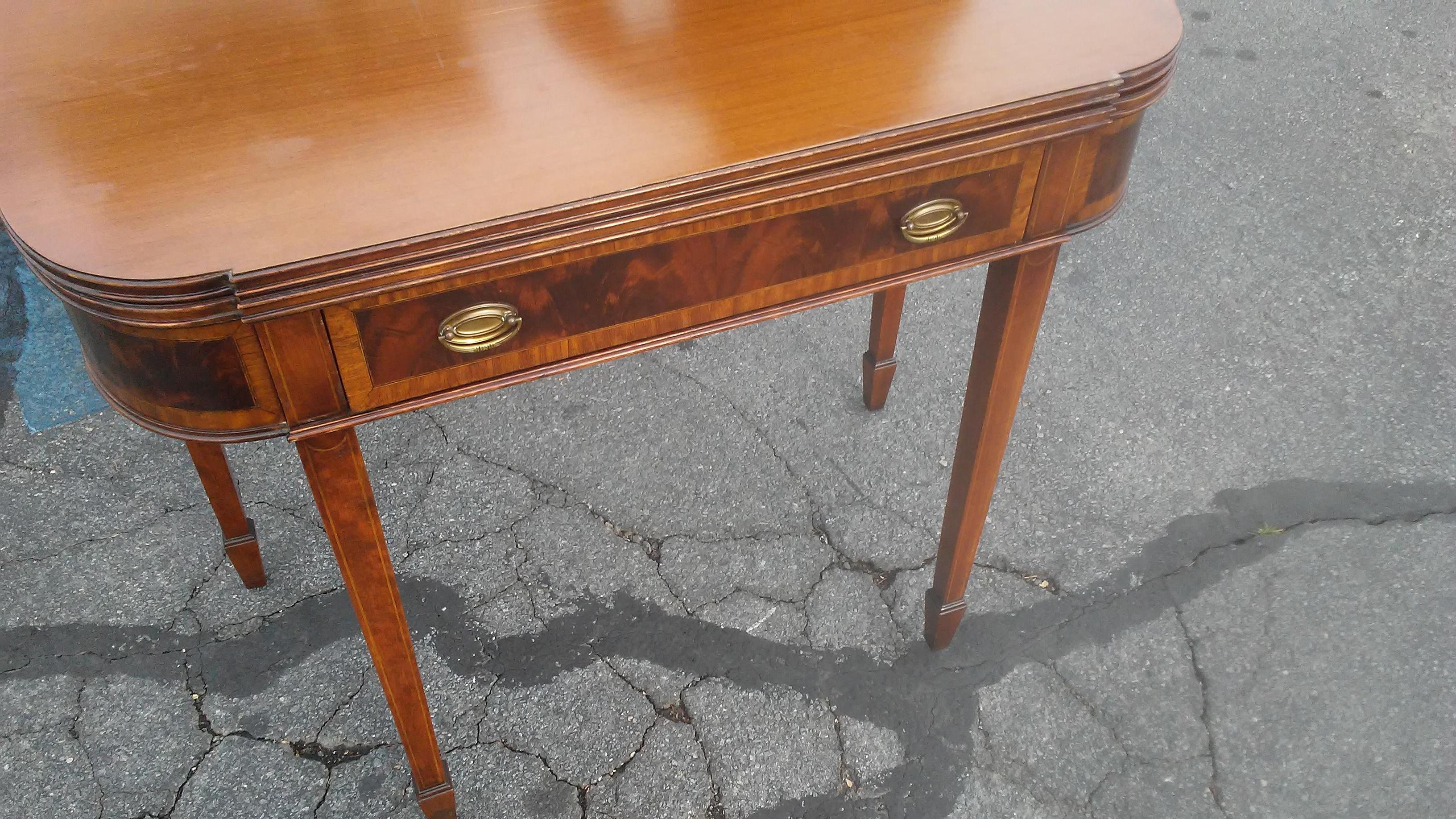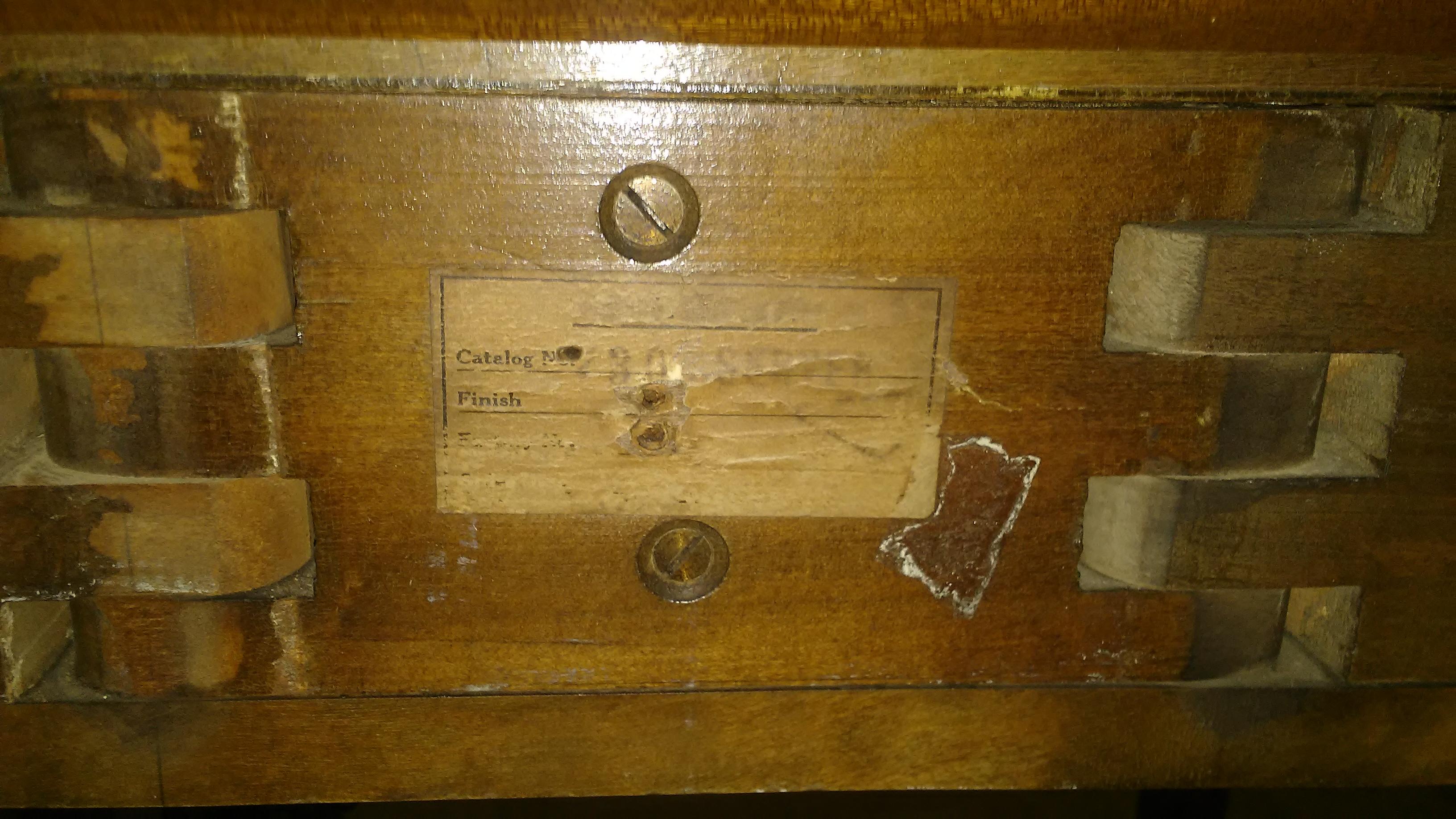 I bought this table. What have to found out is it's got mahogany veneer and satinwood inlays. It has Spade feet. It could be called a card table, game table but there is a sticker on the back that says server table. There is a as I said a sticker on the back that is faded. Has catalog number on it and it looks like finish No. My husband thinks it has machine screws. So perhaps it's the federal Style? Its got the number 10 stamped inside the table with what looks like the number 1 with a number 1 crossing the other. Any information would be appreciated thank you so much for your time.