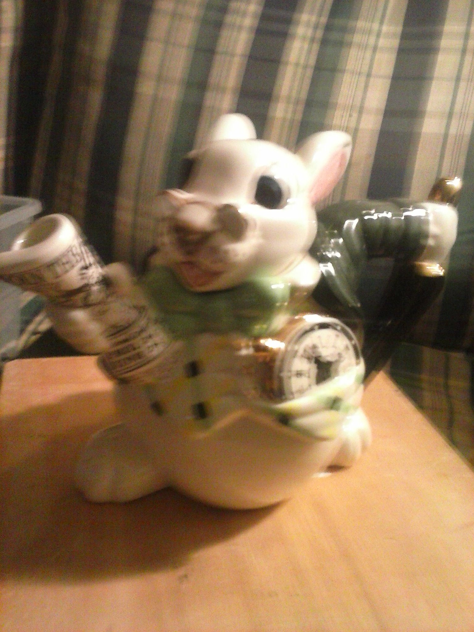 Alice white rabbit collectible ceramic teapot. unfortunatly has a few hairline fracture. original box. Designed in england. limited edition. Piece number 1527 out of 3000