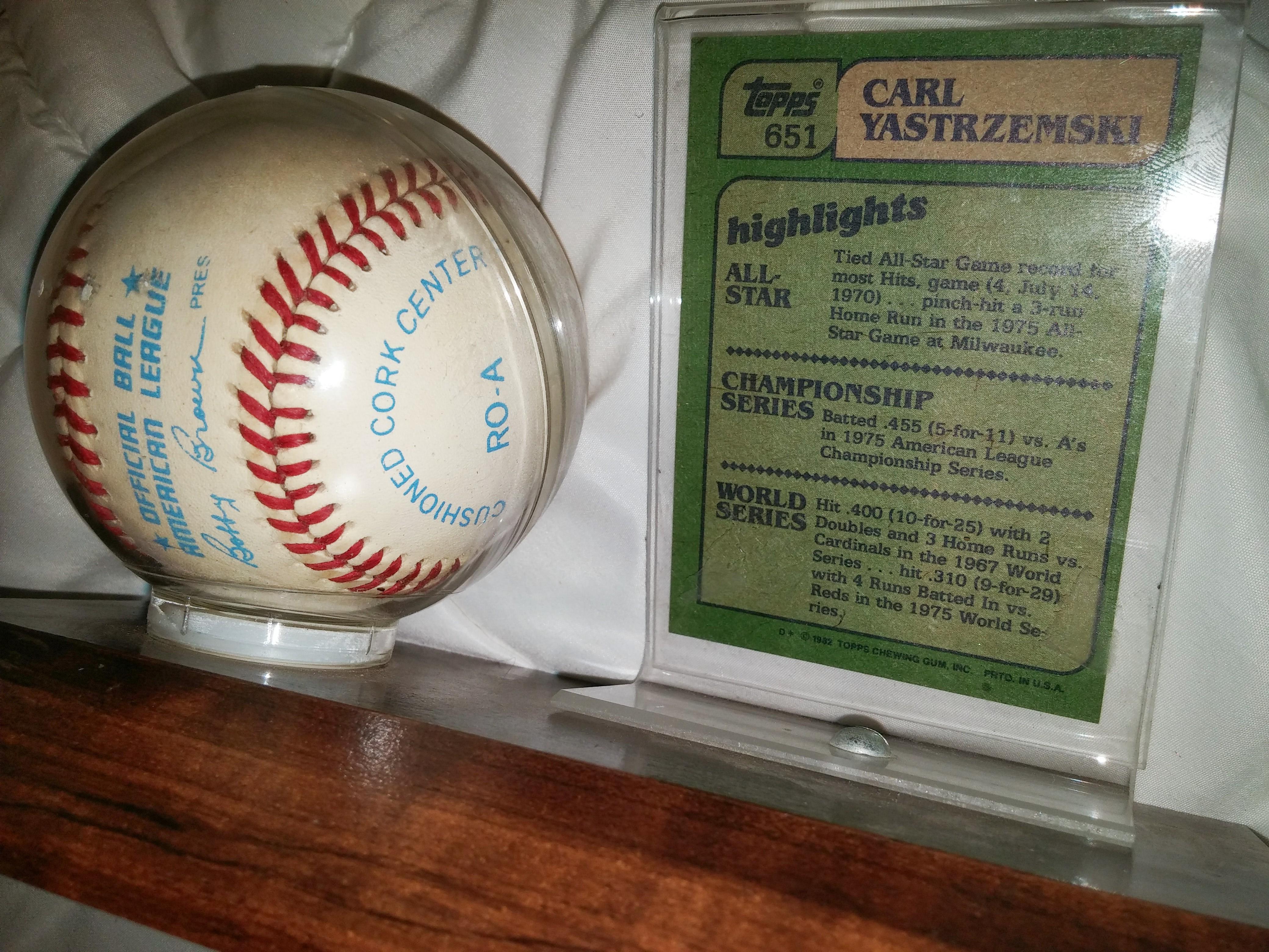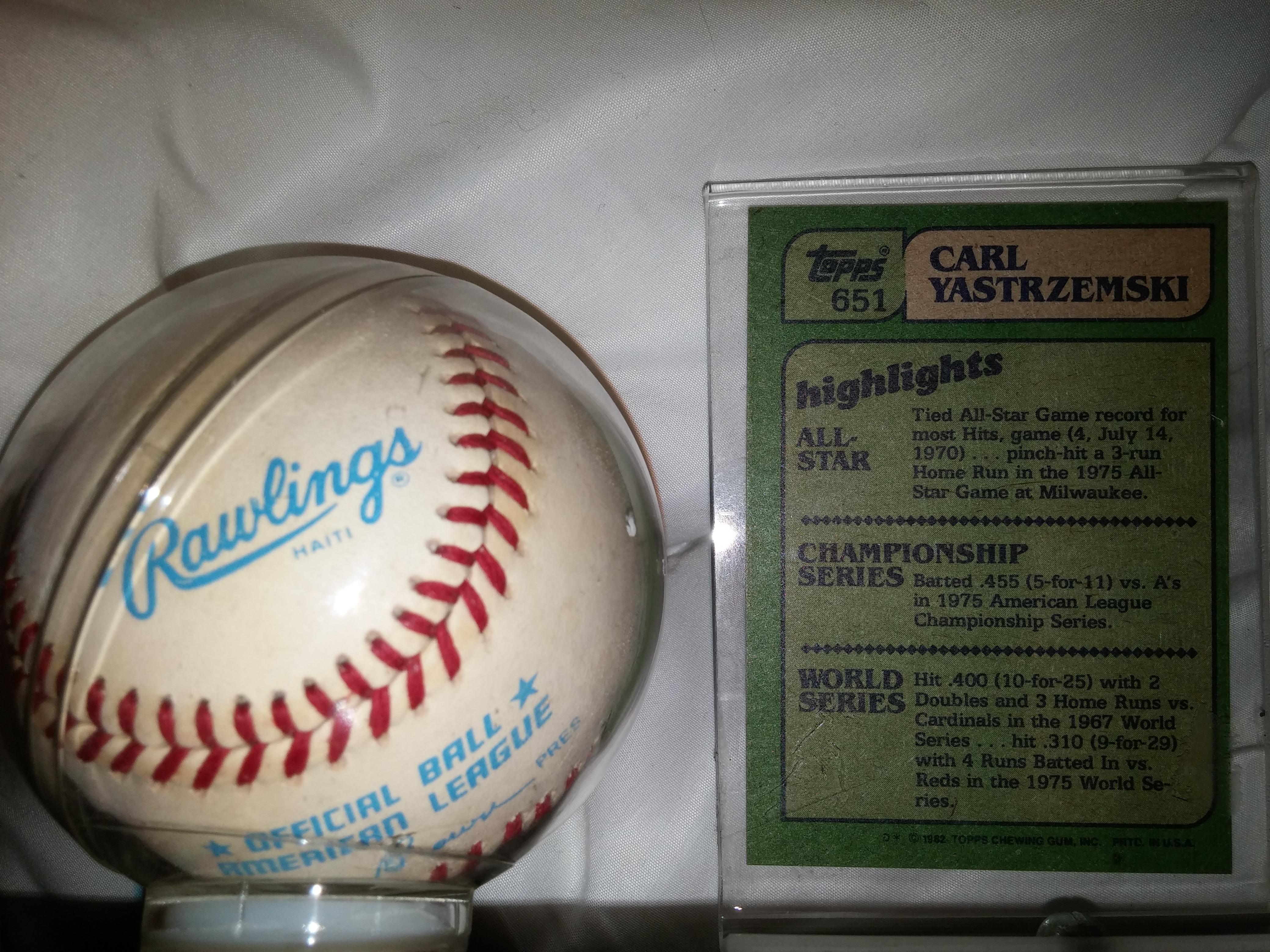 Baseball is autographed by Former Boston Red Sox Carl Yastrzemski. There is only his autograph writtem on the baseball.