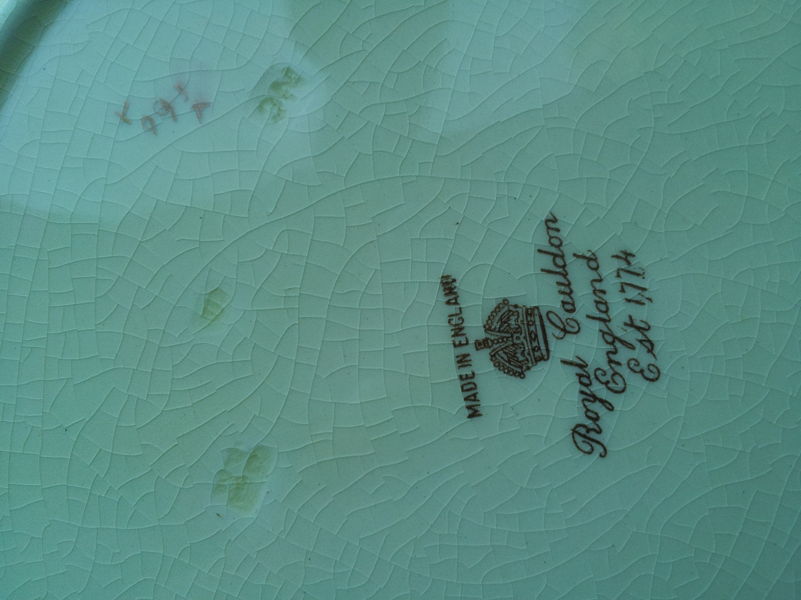 i have a plate with the carnarvon castle eagles tower on front of it and on the back it has made in england, a crown, and says the royal coudon england 1774 with markings MC and apears also to have like a butterfly stamp also